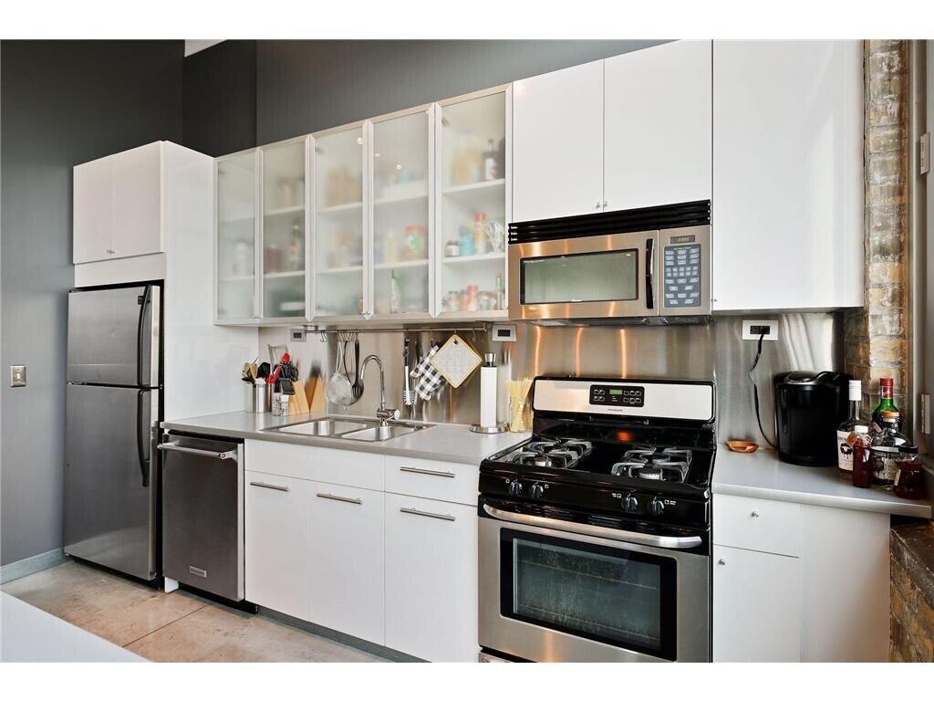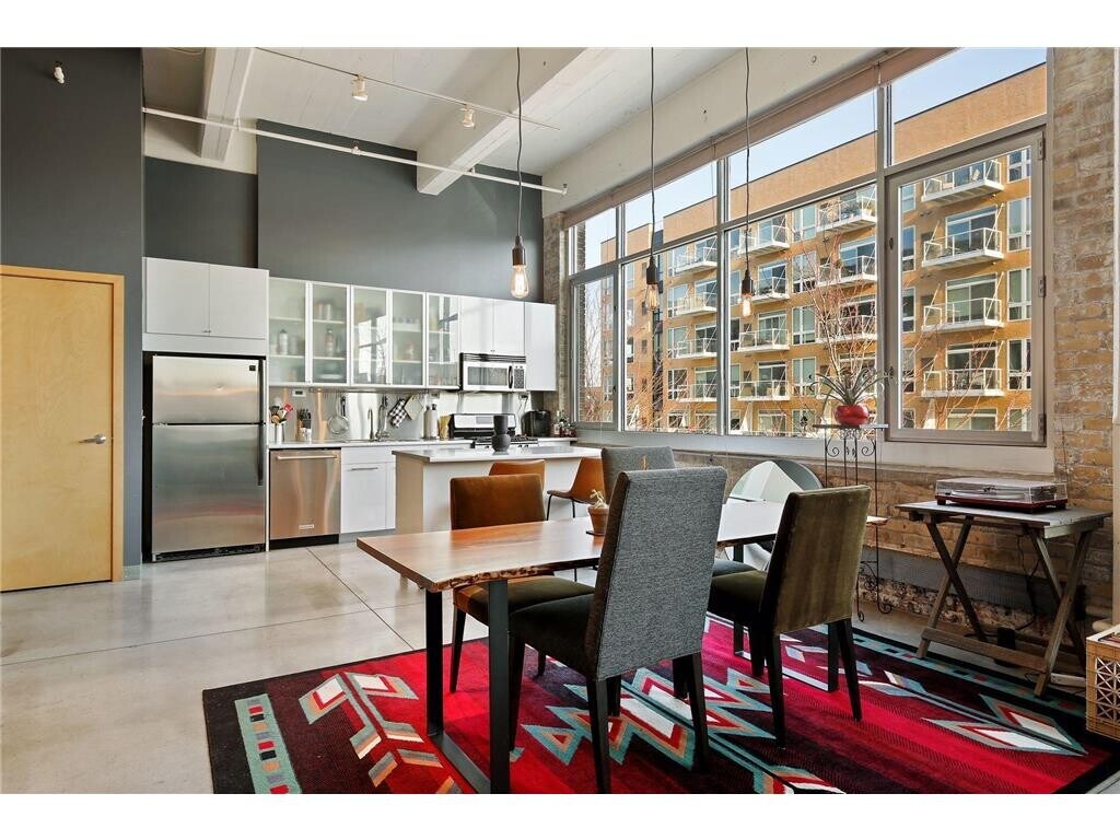 Spacious Tower Lofts 2BR with a wall of windows available in the heart of the North Loop. Bright and sunny loft features exposed exterior brick wall, 13’ ceilings, honeycomb blinds, polished concrete floors, upgraded lighting and ceiling fans, and terrific built-in closet organizers. Kitchen has mobile island with space for barstools and cabinetry, stainless steel appliances and backsplash, gas oven and opaque glass cabinetry doors. Tower Lofts is has a 6,000 sq ft of community rooftop patio space with grilling stations and skyline views, onsite staff, and secure access; all just steps from landmarks or the neighborhood. Included with rent: 1 indoor heated parking stall (2nd stall available for additional $200 per month,) 1 storage unit, water/sewer/trash, basic cable & internet. Tenant responsible for electric. App Fee: $78 per adult, Admin Fee: $150, Move-in fee: $250. Deposit is one month's rent.