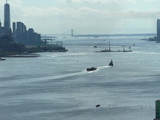 BRIGHT + SUNNY, SPACIOUS 2 BED + 2.5 BATHS JUST RENOVATED AND MOVEIN READY!PERFECT NYC & HUDSON RIVER VIEW FRM ALL RMS! NEW FLOORS,SMOOTH CEILINGS,ASS THRU KITCHEN FEATURES WHITE WOOD CABINETRY,STONE COUNTERTOPS,ALL-STAINLESS DW,REFRIGERATER,MICRO &DISHWASHER,PROVIDES A GREAT WORK-SPACE FOR CREATING DELICIOUS CUISINE,HUGE LIVING RM-DINING RM W EXTENDEND SOLARIUM,GREAT FOR ENTERTAINING OR JUST RELAXING WHILE ENJOYING THE PARADE OF YACHTS & BOATS CRUISING THE RIVER & THE ICONIC NYC BUILDINGS! GUEST POWDER RM AT ENTRANCE,FULL BATH FOR 2ND BEDRM W DEEP WALKIN CLOSET,PRIMARY SUITE W WRAP AROUND CLOSETS AND PRIVATE ENSUITE TUB/SHOWER FULL BATH! MEGA CLOSETS THROUGHOUT UNIT,PROVIDES GREAT STORAGE!PETS WELCOME!ON-FLOOR LAUNDRY! SWIM YEAR'ROUND IN OUR NEW OLYMPIC SIZE HTD INDOOR POOL,OUTDOOR HTD POOL,UNWIND IN OUR HOT TUB,WORKOUT IN STATE-OF-THE-ART HEALTH CLUB & WEIGHT RMS,ENJOY TENNIS OR PICKLEBALL ON OUR NEW COURTS,AND WORK REMOTE W FREE WI-FI" IN THE SPA LOUNGE! MULTI-LEVEL I.D. GARAGE PARKING AVAIL ONLY $120. MO. PER CAR EXTRA!ON-SITE CONVENIENT 2-LEVEL SHOPPING MALL!PRIVATE MINI-PARK! E-Z COMMUTE TO NYC !"