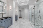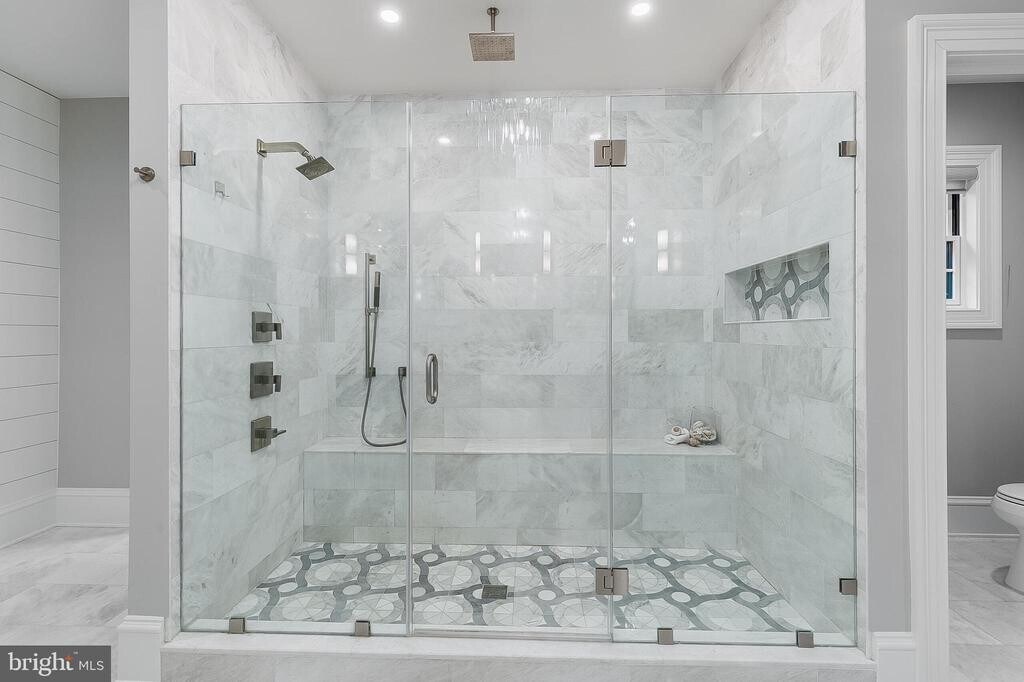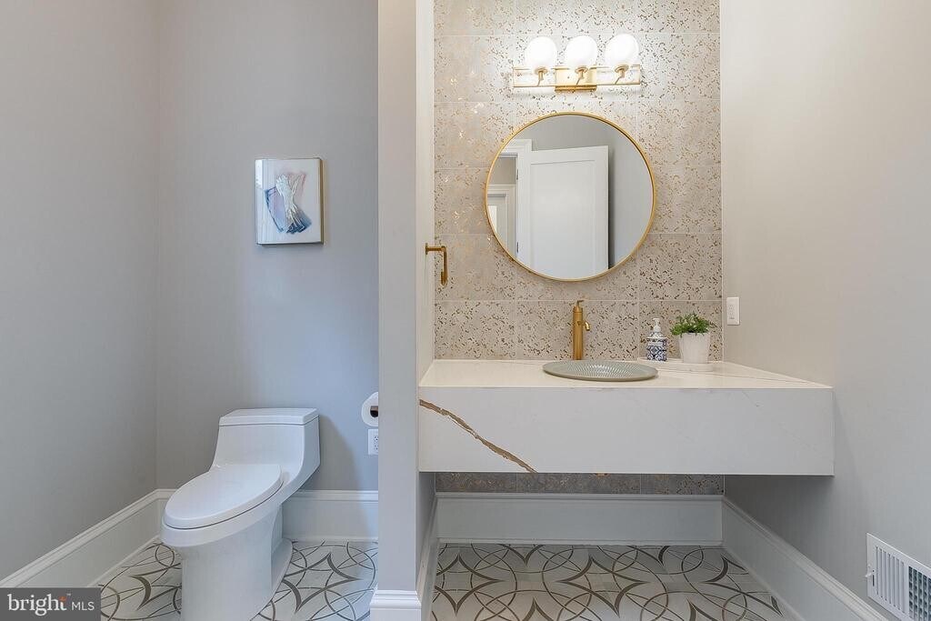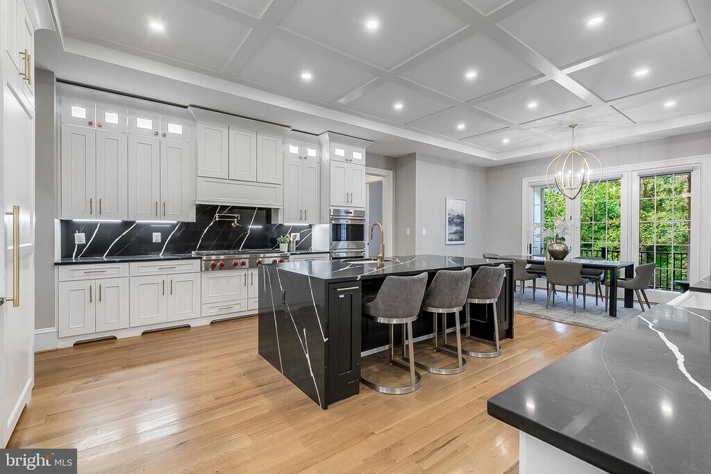 This architectural showpiece, completed in 2022, blends masterful craftsmanship with striking modern design. Set within the coveted Langley Forest community, the home is filled with natural light and refined details — created for those who value sophistication and comfort. A welcoming foyer sets the tone with elegant formal living and dining rooms, while the breathtaking family room features a sleek fireplace and French doors that open to the expansive rear deck, which overlooks the private yard and includes a gas fire pit and a built-in gas line for grilling. At the heart of the home is the gourmet kitchen, featuring a bold statement island topped with Silestone Quartz, custom cabinetry, designer backsplash, a farmhouse sink, and top-of-the-line appliances. A sunlit breakfast room completes this beautiful space. On the main level, a private study with soaring 12-foot ceilings, a full guest suite, and an elegant powder room provide both function and quiet retreat. Upstairs, the owner’s suite stuns with three custom walk-in closets and a spa-like bath with heated marble floors, dual vanities, a jetted soaking tub, and an oversized shower. Three additional ensuite bedrooms with tray ceilings and a well-appointed laundry room complete this level. The walk-out lower level transforms into a private retreat — featuring a wet bar, expansive recreation room, fully finished media room with tiered seating, two fitness rooms, and a guest suite with full bath, kitchenette, and private entry, offering the ultimate in comfort and flexibility. Numerous high-end upgrades were added since the home was completed in 2022, including: custom fencing, an expanded driveway, a thoughtfully finished media space, and custom built-ins throughout, to name a few. Additional features include a large, flat backyard, a three-car garage with dual EV chargers, a whole-house generator, and an elevator-ready design. Ideally located with easy access to both Reagan National and Dulles airports, and just minutes from Tysons Corner. Nearby interstates make commuting effortless, blending luxury with convenience.