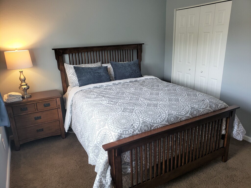 Video tour: Fully furnished unit. 2 queen sized beds. 2 full bathrooms. Utilities included: water, gas, electric, internet. Comes with everything you see in the pics. Full linens, dishware, and cookware. Washer and dryer included. Parking space x1 included. Additional parking is first come first served. Gated community with pool, gym, and tennis courts. Located on a golf course. Quiet community close to 95, 295, and 64. Near shopping mall and many restaurants. Amenities included: balcony, central air, central heat, deck, dishwasher, hardwood floors, pool, stainless steel appliance, updated kitchen, updated bathroom, storage, washer dryer, laundry in unit, yard, gym, golf course, playground, and tennis court. Utilities included: cable, electricity, heat, gas, internet, air conditioning and water. Is not pet friendly.