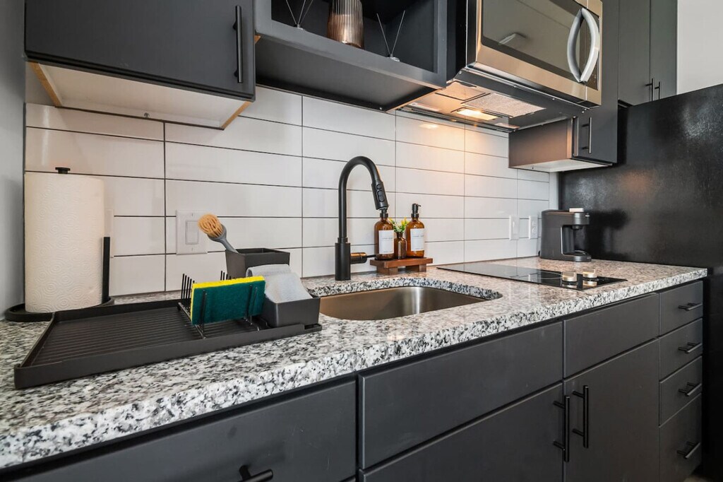 Get ready to explore Montrose in style and feel at home in this open-concept unit, perfectly positioned for on-foot adventures. This Montrose muse features a living area with a comfy couch and smart TV, a double-sized bed with built-in storage, a full kitchen with a fridge, microwave, induction stove, and coffee maker, a washer and dryer, a private bathroom and an in-unit balcony. Enjoy access to the community pool, co-working spaces, lounge area, gym and roof deck with shared grill and fireplace. Underground and street parking are available. You'll love being just a 5-minute walk to the Menil Collection and Rothko Chapel, and a 10-minute walk or scooter ride to Buffalo Bayou Park. This apartment is also just minutes from the cluster of cafés, thrift shops, and local art spots around Westheimer and Dunlavy, and a short ride or scooter to nightlife hubs like Numbers and JR’s. No parties or large gatherings are allowed without the host's permission. Any unauthorized guest is subject to a $150 per guest penalty. If the neighbors end up calling the police due to noise disturbance, a fine of $500 is applicable. The lost keyfob fine is $250. Undeclared pets are subject to a $300 per pet per night penalty. Any unauthorized early check-in or late check-out is subject to a $200 fine. Smoking is prohibited in the house or garage, and there is a $500 penalty fee. Guests are required to send their valid ID for verification and safety purposes during their stay. [SI]