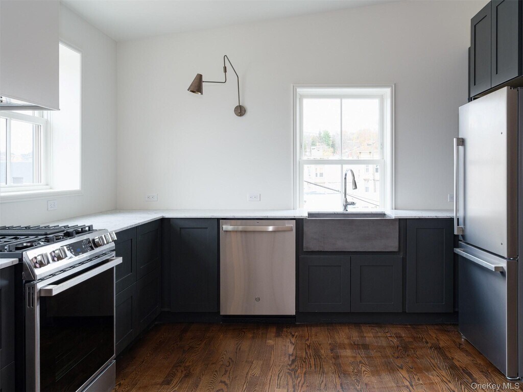 Newly restored from top to bottom,704 Columbia Street is a beautifully renovated historic building in a prime location in the City of Hudson. Tastefully finished and in mint (never lived-in) condition,Unit 4 features two bedrooms and one bathroom,vaulted ceilings and an oversized back deck,blending the tasteful interiors with ample outdoor space. Situated in Hudson's "Depot District" and just off of Warren Street,the apartment is bright and lofty,with exposed beams and a generous open layout. The kitchen features brand new stainless appliances,an integrated vent-hood over the range,and a dishwasher,as well as plentiful cabinets and counter space. Just off the kitchen,the private back deck is a perfect spot for morning coffee or relaxing outside. Each bedroom enjoys scenic treetop views of 7th Street Park,and the sizable bathroom also features heated radiant floors. The apartment has its own in-unit washer/dryer as well as central heat and central air conditioning. This is a truly turn-key apartment where style and ease-of-living matter in equal measure. At 704 Columbia,you are just moments away from 7th Street Park,Hudson Roastery,Hudson Diner,Return Brewing,The Hereafter,and the newly opened Pocketbook Factory Baths and Hotel. The plentiful shopping and dining options along Warren Street are also at your doorstep. Off-street parking is offered with the apartment as well. Pets considered case by case. Shown by private appointment. Based on information submitted to the MLS GRID as of [see last changed date above]. All data is obtained from various sources and may not have been verified by broker or MLS GRID. Supplied Open House Information is subject to change without notice. All information should be independently reviewed and verified for accuracy. Properties may or may not be listed by the office/agent presenting the information. Some IDX listings have been excluded from this website. Prices displayed on all Sold listings are the Last Known Listing Price and may not be the actual selling price.