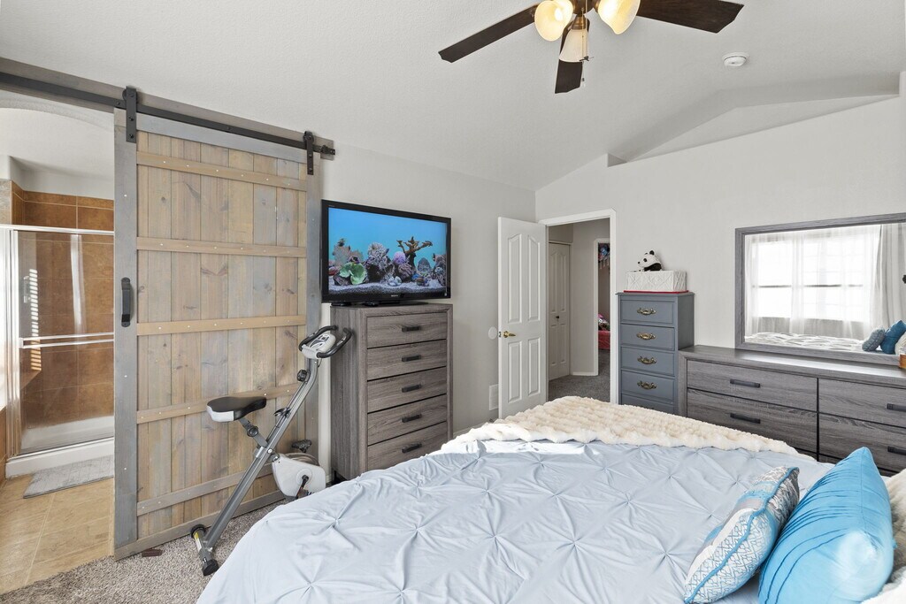 Welcome home to this beautifully maintained home at 7038 Ancestra Drive, where space, natural light, and modern comfort come together in a layout designed for everyday living and entertaining. From the moment you walk in, you are greeted by soaring ceilings, windows letting in natural light, and warm wood-style flooring that fill the home with light and create an open, airy feel. The entry living area flows seamlessly into the dining space and kitchen, making it ideal for hosting, relaxing, and everything in between. The kitchen is a true highlight, featuring granite countertops, a stainless steel refrigerator with ice maker, an electric stove, oven, microwave, dishwasher, and disposal, along with a pantry for extra storage. The dining area overlooks the living space, creating a connected and inviting layout that works perfectly for both daily meals and gatherings. Upstairs, you will find generously sized bedrooms, including a spacious primary suite with a walk-in closet and a barn door leading to a private bath complete with a dual-sink vanity, soaking tub, and separate shower. The secondary bedrooms provide excellent flexibility for guest rooms, home offices, or playrooms. The home also includes a dedicated laundry room with washer and dryer hookups, keeping everyday routines organized and convenient. Outside, enjoy a fully fenced backyard with a deck and fire pit, perfect for summer evenings, pets, or weekend gatherings. The sprinkler system helps maintain the lawn. Additional comforts include central air conditioning, ceiling fans, a cozy fireplace in the living room, a water softener, an alarm system, blinds throughout, and an attached two-car garage. Located in a community with walking and running trails, and only 10 minutes from Fort Carson, this home offers both comfort and convenience! Schedule an in person tour today!