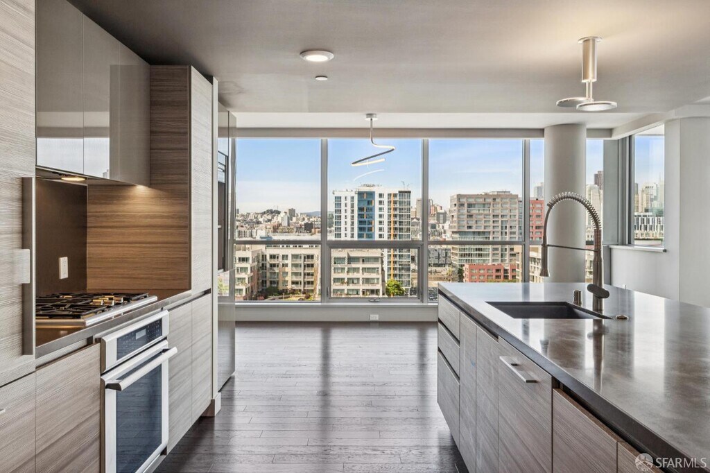 This stunning and rarely available 3-bedroom, 3-bath residence is one of the premier view homes at Arden, offering one of the largest 3-bedroom floor plans in the building and showcasing breathtaking panoramic views of Mission Creek, Oracle Park, the Bay Bridge, and Downtown San Francisco. Extensively customized with high-end finishes, the home features European lacquered-glass built-ins, including a bespoke entry console, sleek entertainment center, integrated pantry, linen storage, Wide-plank wood flooring, and thoughtfully designed cabinetry throughout. Somfy motorized shades are fully recessed for a clean architectural look, while curated LED lighting enhances the home's refined, modern aesthetic. The expansive living and dining areas seamlessly open to a large private terrace overlooking the water and park. The chef's kitchen anchors the home with an oversized island, Caesarstone countertops, and premium Thermador appliances. The spacious primary suite features dual closets with custom built-ins and a luxurious en-suite bath complete with dual vanities, soaking tub, separate shower, Toto bidet, and designer finishes. Two additional bedrooms enjoy tranquil park and city views, generous storage, and well-appointed bathrooms. Private storage is available to lease for $300/month. The Arden showcases two exquisitely designed lobbies with attentive staff, an inviting fireside lounge reminiscent of a luxury hotel, a stunning rooftop lap pool and hot tub spanning 75 feet, a fitness center, and an outdoor courtyard offering captivating city views, complete with BBQ grills and a fire pit. Arden is located in the vibrant Mission Bay neighborhood, adjacent to a dog park, children's playground, and the Channel, and just a short walk to Chase Center, Oracle Park, Spark Social, tech HQs, cafes and restaurants, MUNI Caltrain, I280, and the UCSF campus. MLS # 426113056
