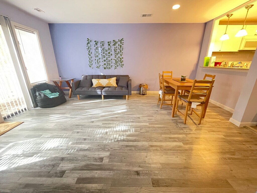 Available mid-August! Walk to Campus! This is a nice, updated and conveniently located 2br unit in Mill Creek, one of the favorite places in town for student renting due to proximity to UNC & downtown and being right on the free bus line! Featuring a garden-style floor-plan, unit E-4 has an updated interior with modern LVP flooring, a styish kitchen equipped with all appliances, a large living/dining area and two spacious bedrooms, each with its own bathroom. The living room and kitchen are connected by a convenient 'pass-through' window, providing a nice open feel, allowing those in the kitchen to still be a part of all the action in the rest of the space. Just beyond the living room and accessible via sliding door is a private back deck, the perfect place to relax after a long day. The bedrooms each have dual closets and windows to let in ample natural light. Other features include washer & dryer, all major appliances, and onsite parking (included) for each unit. Swimming pool, picnic shelter and tennis courts also onsite. Initial lease term runs approx. 12 months, with yearly renewal option thereafter. No Pets & No Smoking in unit. Security Deposit required is equivalent to the monthly rental rate, due prior to lease signing. Tenants pay water, electricity, internet and $10.50 per month Liability to Landlord Insurance (per unit, not each tenant). Parking pass(es) are included with the rent & will be disbursed after move-in (no extra charge & one pass per bedroom/ lessee with vehicle). Applications are processed on a first-come, first-serve basis. All members of a group must have applications submitted in order to move forward. All roommates apply directly online to this listing @ Dunlap Lilley Properties, Inc. email: