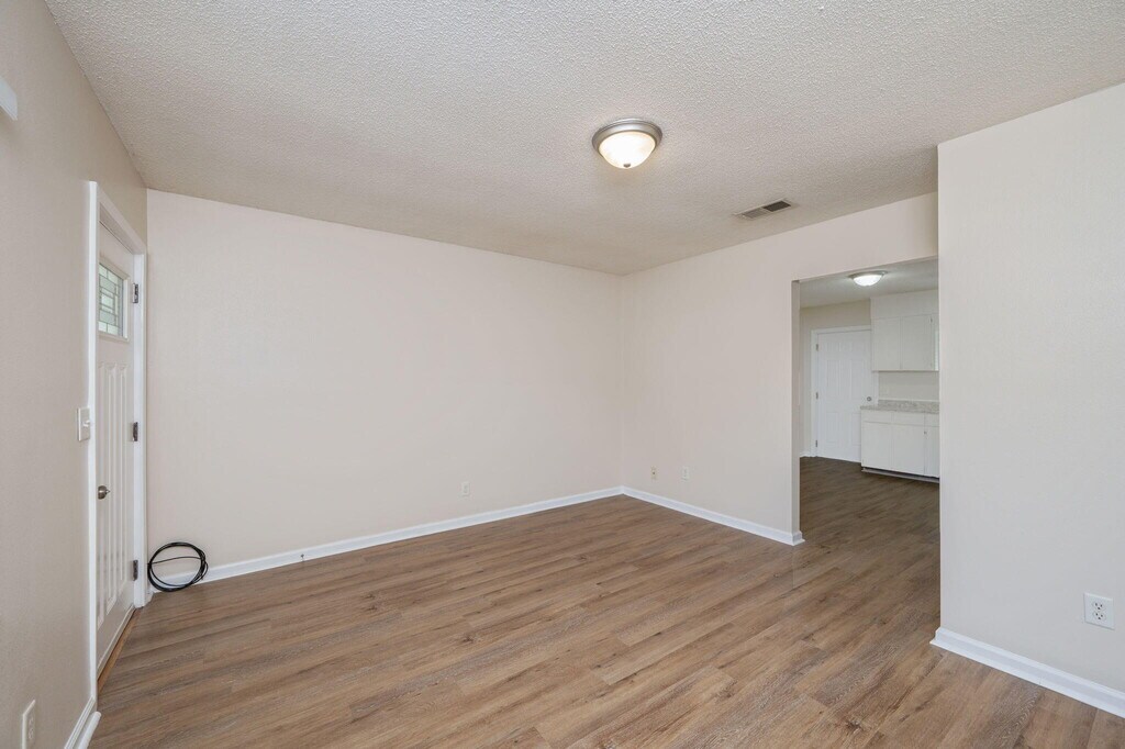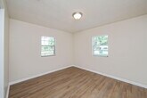 Discover the charm of this cozy two-bedroom, one-bath cottage-style duplex. Solidly built with classic cinderblock construction, this single-story home offers modern updates and timeless appeal. Inside, you'll find luxury vinyl plank flooring throughout, and plenty of natural light that brightens every room. The kitchen features white appliances, a window over the sink, and a simple, functional layout. The full bathroom sits between the bedrooms and includes a ceramic bathtub with a tile surround and a single vanity. Step outside to enjoy a large backyard with mature trees offering shade and privacy--ideal for outdoor living or future landscaping plans. Low-maintenance, full of charm, and conveniently located, don't miss out on the opportunity to make this your home!