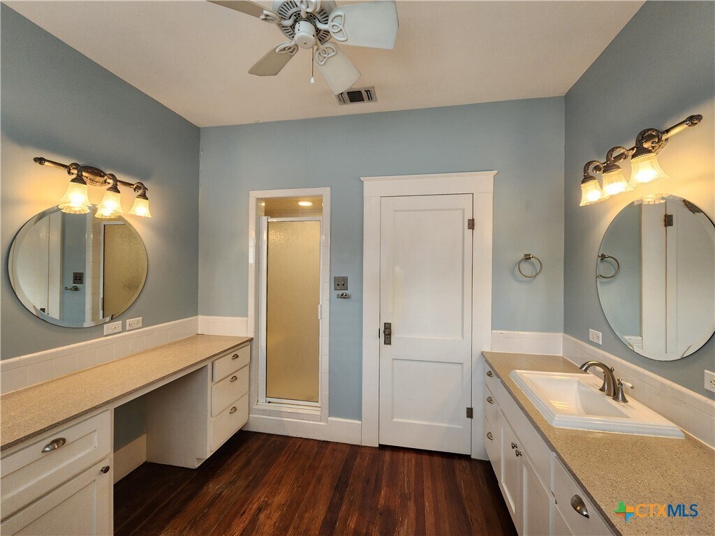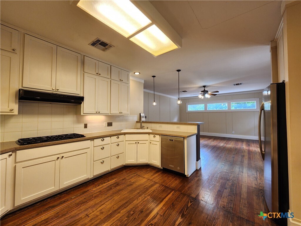 Less than a mile to the heart of historic downtown New Braunfels which boasts shopping,restaurants & other entertainment. Schlitterbahn and the cold waters of the Comal River are about 1.5 miles away. AMAZING Craftsman Style House with Beautiful Era Specific Built Ins! 3 Bedrooms / 2 Bathrooms/ 2 Living Areas /1 Dining Room /1 Office / 1 Flex Room (Butlers Pantry)(Perfect for a Bar Setup) / 1 Detached Garage /1 Detached Carport & 1 Storage Shed / Work Space. Hardwood Floors throughout - no carpet! Kitchen Features Include: gas cook top,built in oven,fridge,dishwasher,quartz counter tops,breakfast bar,tons of cabinet space,& windowed cabinetry. Secondary bedroom closets have built ins. Secondary bedroom has built ins. Washer & Dryer Included. Primary has 2 closets,1 walk in closet & a jacuzzi tub & walk in shower. Electric gate opens to garage / parking / backyard. Gas Lamp in front yard near gate. NBISD 1 pet allowed - sorry no cats & dogs need to be over 12 months & max 50 lbs.