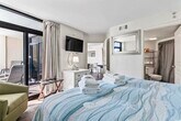 Monthly rental available Month-Month from October - February. This is a furnished rental and is ready for guests. We’re offering a special monthly rate of 1,450 for stays between October and February. Welcome to Amazing Oceanview 2-bedroom with waterpark,pools,and arcade! We just underwent a total renovation and upgraded this pristine beachfront condo. Enjoy a comfortable stay with a full kitchen,open living area,and master bedroom with oceanfront balcony access.