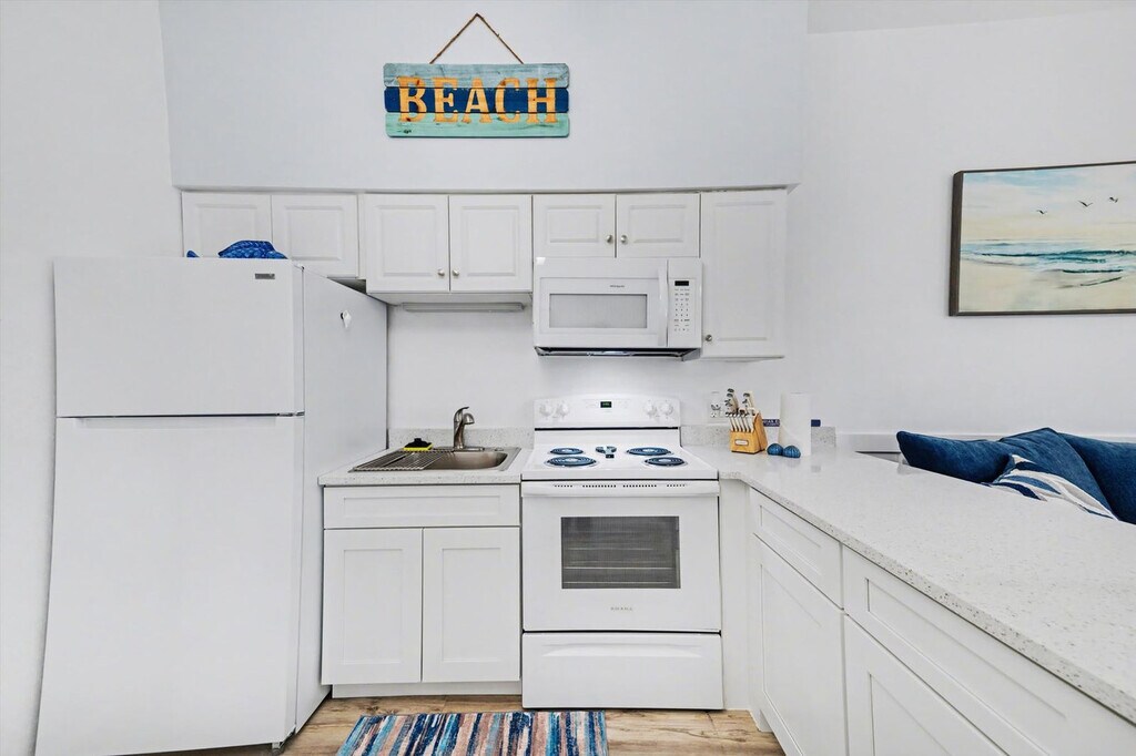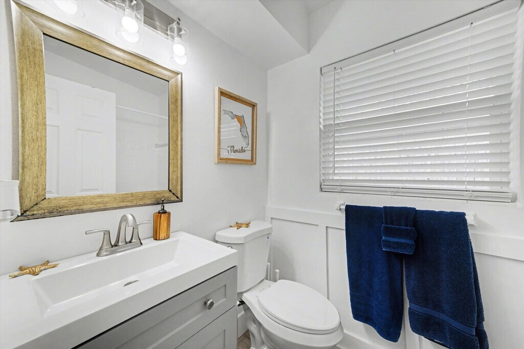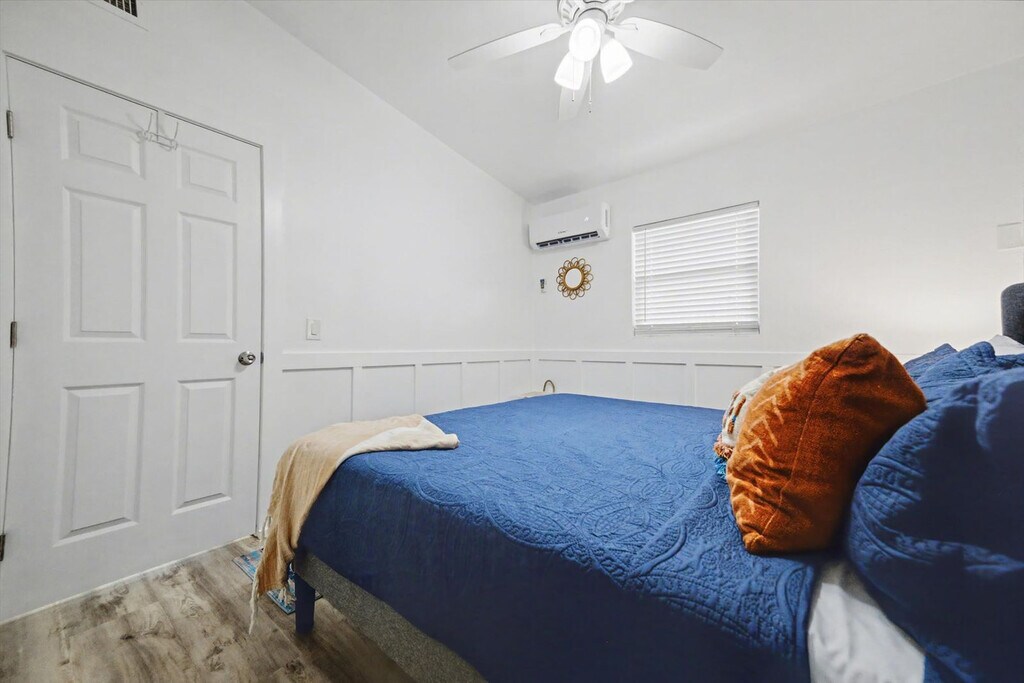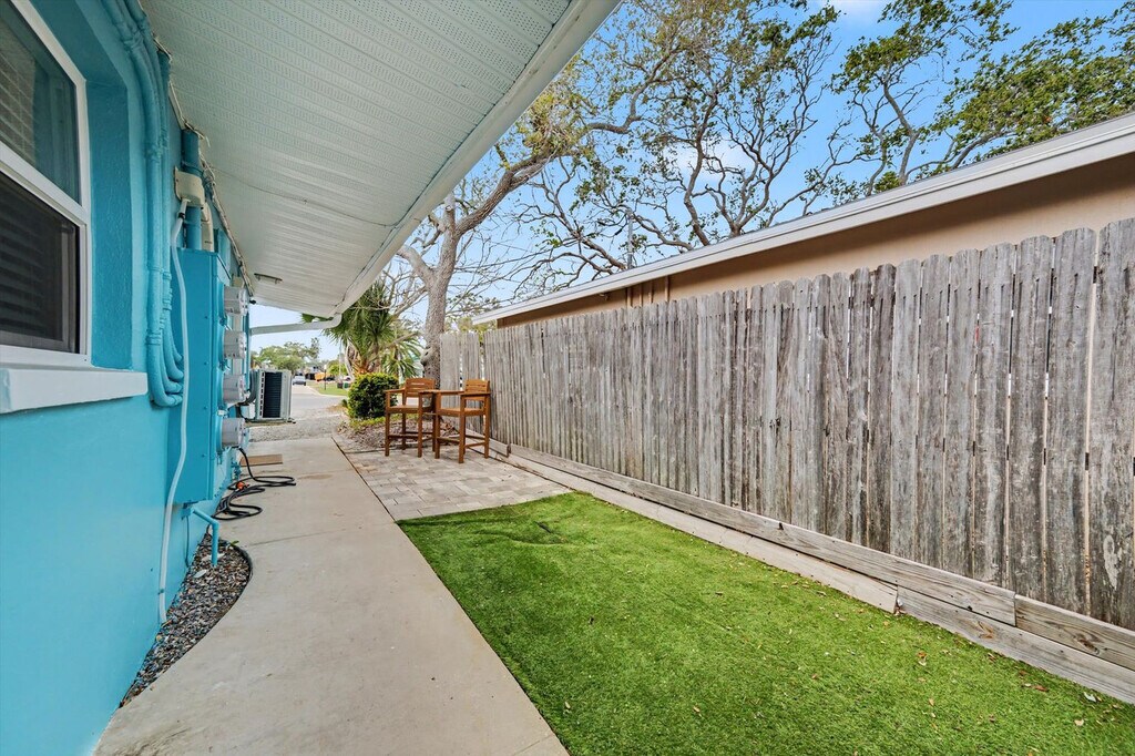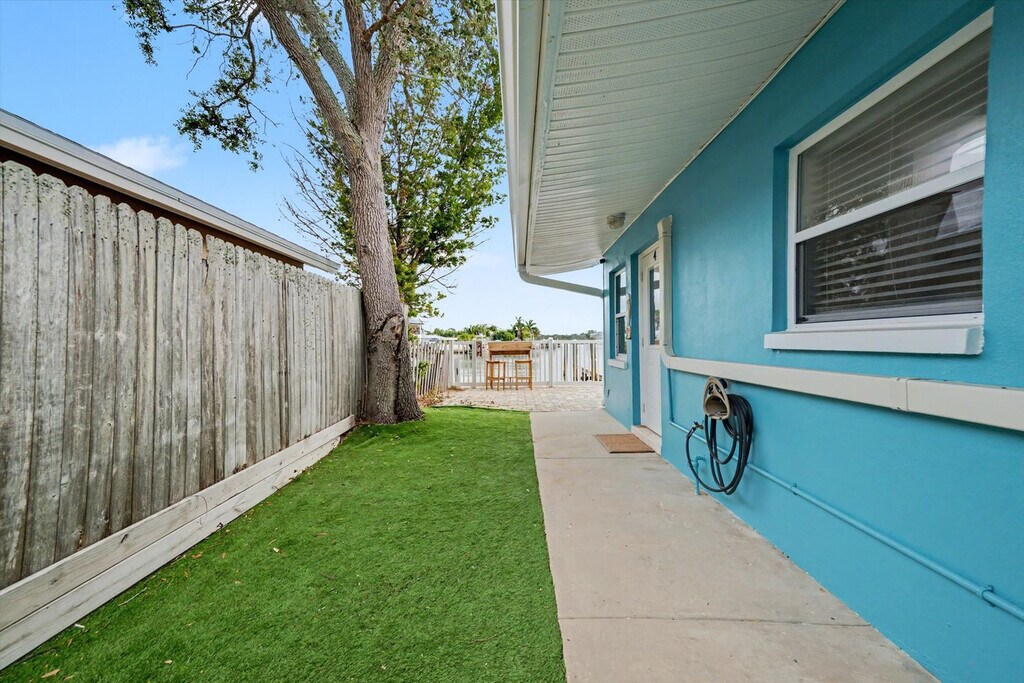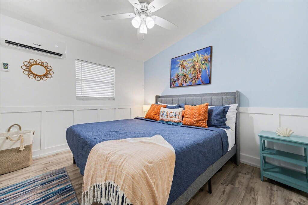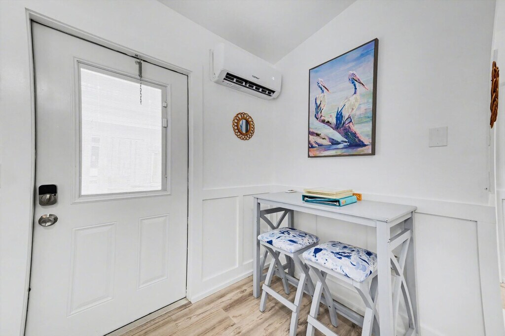 Feel at home in this cozy 1-bedroom bungalow in Indian Rocks Beach, ideal for couples or small families. This ground-floor unit is nestled along the Intracoastal Waterway and offers a private entrance. This beautifully updated unit is designed with comfort and style in mind, featuring vaulted ceilings and a modern, fully equipped kitchen with brand-new appliances, including an oven, stovetop, microwave, and refrigerator. The kitchen also features natural wood cabinetry, a dining table, and a coffee maker. The living area includes a comfy full-size pullout sofa and a smart TV. The bedroom features a king-size bed, a smart TV, a storage closet, bedside tables, and lamps. Guests have access to a common laundry area and custom flood barriers for added peace of mind. Linens, bath and beach towels, coffee, and starter soaps are provided. Free parking for one vehicle is available in a designated space, and the apartment is pet-friendly with a fee of $125 per pet per stay. Located just two blocks from the beach and within walking distance of top-rated restaurants and shops, this apartment offers direct access to the beach and is close to the Intracoastal Waterway for fishing. Popular restaurants such as Kooky Coconut, Oma's Pantry, and Jake's Coastal Cantina are nearby. The location also offers quick access to Tampa Bay’s airports for convenient travel. A digital rental agreement must be signed and completed prior to arrival, including providing a photocopy of a legal ID and a verification selfie. Guests can bring up to two pets, and they must be leashed when not inside. Guests must pick up after their pet, or a penalty of $75 per incident will be charged. No smoking or vaping is allowed inside the apartment, and if cleaners determine smoking has taken place, a $250 penalty will be charged. [SI]