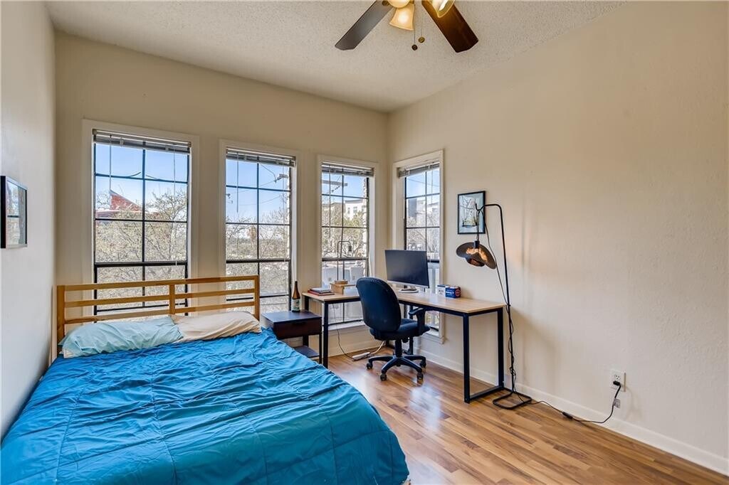 This spacious third-floor condo has been tastefully updated throughout. Enjoy vaulted ceilings, abundant natural light, and a private balcony. Open floor plan with large rooms, great kitchen storage, and ample counter space overlooking the living area. Split bedrooms for added privacy. Includes two parking spaces (one covered). Prime West Campus locationsteps from UT, MLK, Guadalupe, and nearby parks. Available for immediate move-in at $1,700/month or August 2026 pre-lease at $1,950/month.