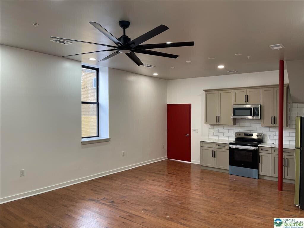 Welcome to Firehouse Flats, Apartment 3, a private, spacious 2-bedrooms, 1-bathroom third-floor residence offering 931 square feet of modern living in the heart of downtown Allentown. Features include high ceilings, ceilings fans in every room, central air conditioning, a luxurious bathroom, laundry in unit and a layout ideal for both comfort and functionality. Located within walking distance of the PPL Center, major employers, restaurants, and entertainment, this home is perfectly positioned for professionals seeking easy access to downtown amenities without sacrificing privacy, space or comfort.