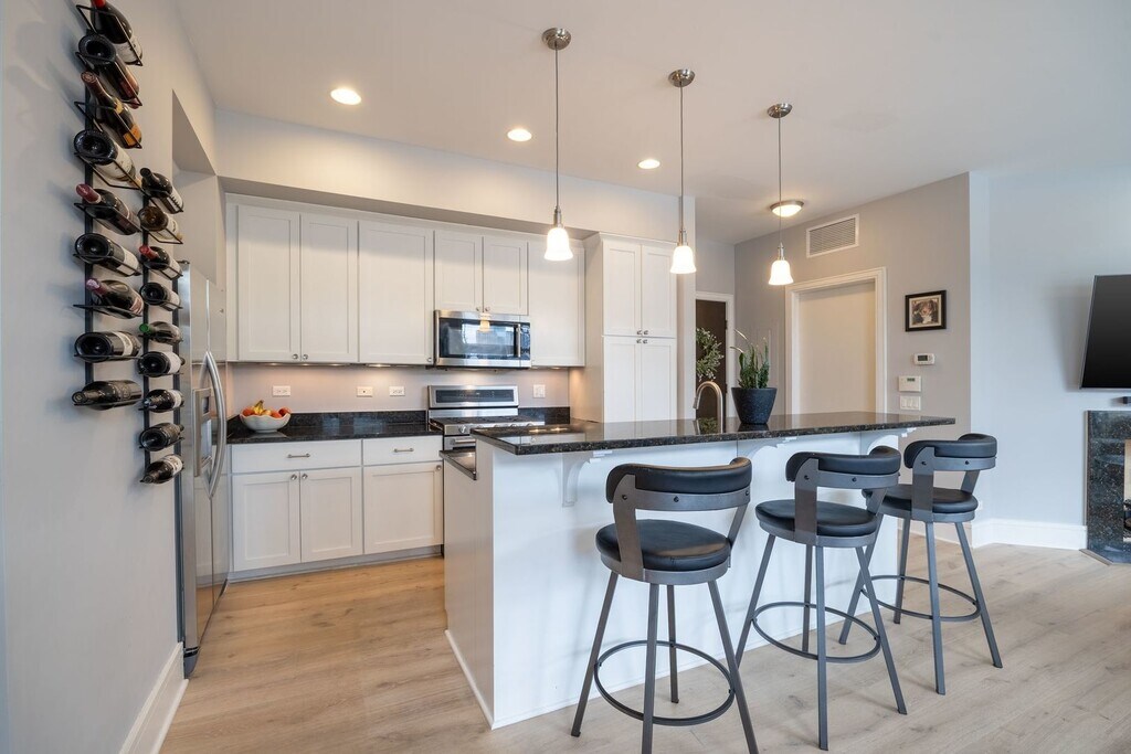 Located in an intimate elevator building in vibrant Fulton Market,this beautifully updated 2-bedroom,2-bath condo features new wide plank light oak flooring and fresh carpeting in the bedrooms. The modern kitchen boasts crisp cabinetry,granite countertops,and stainless steel appliances. The open concept living/dining space is perfect for entertaining your guests. Enjoy a private balcony off the dining room that overlooks Chicago's beautiful skyline. The spacious primary suite offers a luxurious double vanity bathroom with a soaking tub and separate shower,plus a massive walk-in closet with custom-organized shelving. Additional perks include an extra storage cage and heated garage parking available for $200/month. Steps away from Grand Blue line stop,Restaurants,shops and more! MLS# MRD12491007 Based on information submitted to the MLS GRID as of [see last changed date above]. All data is obtained from various sources and may not have been verified by broker or MLS GRID. Supplied Open House Information is subject to change without notice. All information should be independently reviewed and verified for accuracy. Properties may or may not be listed by the office/agent presenting the information. Some IDX listings have been excluded from this website. Prices displayed on all Sold listings are the Last Known Listing Price and may not be the actual selling price.