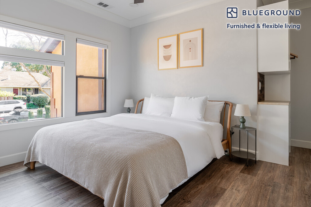 Show up and start living from day one in Palo Alto with this charming two bedroom Blueground apartment. You’ll love coming home to this thoughtfully furnished, beautifully designed, and fully equipped Crescent Park home. (ID #SFO1763) The advertised rate of $5,330/month is the lowest available price, based on a 2 month(s) and 29 day(s) stay with a move-in date of October 17, 2025. If you’re looking for a 1-year stay, the rate is $6,250/month. Rates vary depending on the duration of stay, season, and other parameters. For exact pricing and additional pricing components, please visit our website and enter your desired move-in and move-out dates. The rate is applicable when billed upfront; it can be higher if billed in multiple payments. Brokers are welcome to reach out. Were you looking for an unfurnished lease? Try Blueground instead and upgrade from unfurnished to furnished living: - Furnished at rates comparable to unfurnished - No setup or furniture costs - save thousands - Move-in ready - save time, just bring your suitcase Designed with you in mind As with any Blueground apartment, you’ll find a thoughtfully designed space complete with beautiful furniture and a fully equipped kitchen in this two bedroom property. And, thanks to our superior quality mattresses, luxury linens, and towels, you can relax knowing you’ll always feel comfortably at home. When you’re ready for some fun, you can take in the Palo Alto vibes or bring the entertainment to you with the premium wireless speaker or smart TV. Sleeping arrangements King Bed, 70.8in/180cm King Bed, 70.8in/180cm Amenities Building amenities unique to this two bedroom apartment include an on-site: - Dryer in building - Washing machine in building - Parking - Pets allowed Arrival and ongoing support The entire apartment is yours to enjoy! Throughout your stay, you’ll have access to our Client Experience team through the Blueground App. You can schedule additional cleanings, submit maintenance requests, and view our neighborhood recommendations with just a few taps. We’ll share all details upon confirmation of your stay. Other things to note This Blueground apartment has flexible lease options, allowing you to book it for one month, a year, or more. Pets are welcome, though weight limits and breed restrictions apply and may incur fees. Parking is offered based on availability and is subject to a fee. Please keep in mind that this is a walk up building. We take great pride in ensuring every photo displayed is shot in our own units with our actual furnishings. That said, we regularly refresh our decor and furniture arrangement, which may differ from what’s pictured.