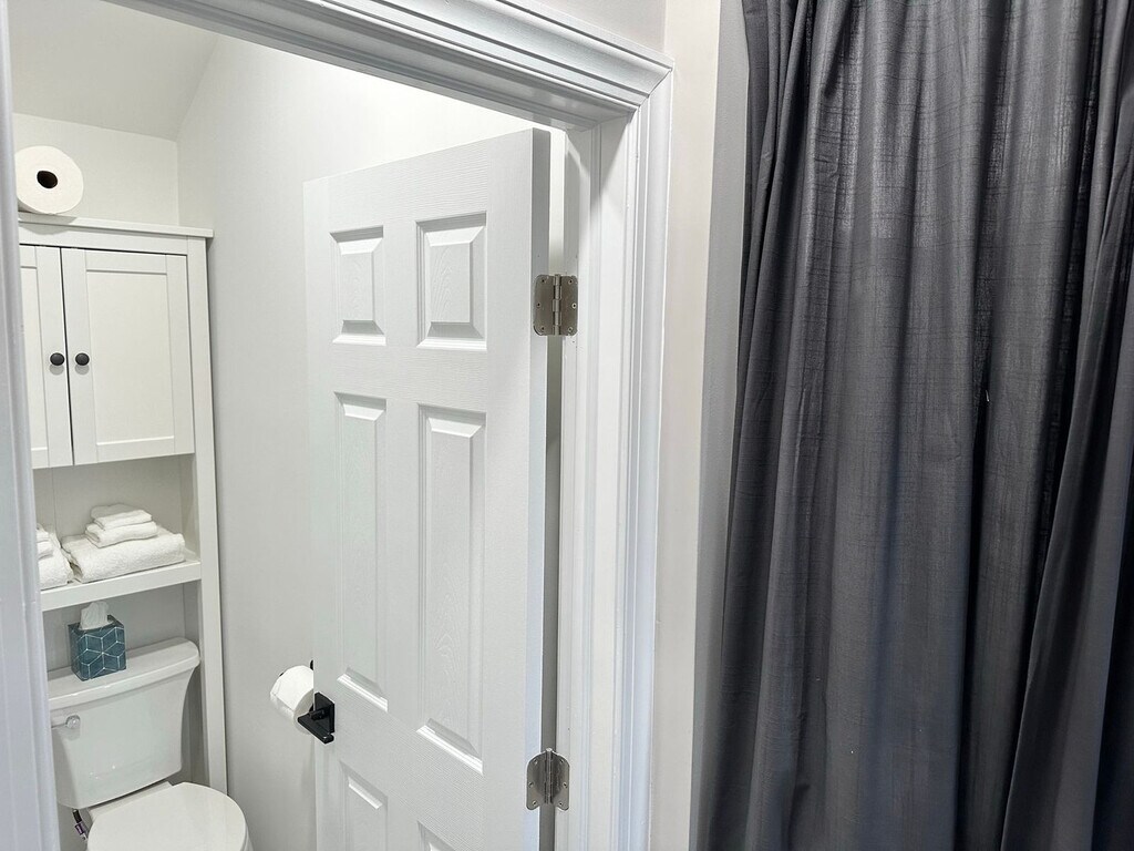 Feel at home in this centrally located, recently renovated and tastefully decorated 2-bedroom, 1-bathroom apartment in Devon, home of the Devon Horse Show, just on the outskirts of Philly on the Main Line. This apartment sleeps up to 5 guests and features a modern kitchen with a table that easily fits four, with an extra table leaf in the closet to expand the table if needed. The spacious living room has a queen-size pull-out couch, and all three rooms have new ceiling fans. Enjoy free shows on the 42” TV with ROKU in Guest Mode, or log in to your personal Netflix, Hulu, or Amazon Prime accounts. Parking spaces are available at the front of the building, but guests are encouraged to park behind the building in the parking lot off of E. Conestoga Road, where you will see the sign for “Head To Toe Healthy Spa”. Devon is home to the popular Devon Horse grounds that have spectacular events in the late spring and fall. Nudy’s Cafe is a short walk out the back door, and Whole Foods Market and a Starbucks are also within walking distance. Across the street from the front of the apartment building is a shopping center with a Target, large Grocery Store, and a Rite Aid, also available by foot. The King of Prussia Mall and historic Valley Forge are a short drive away, and Philadelphia is easily accessible by train. The rear of the building is also where the entrance to the apartment is.