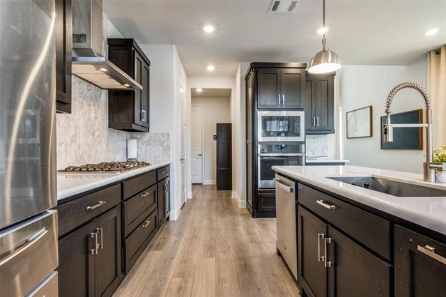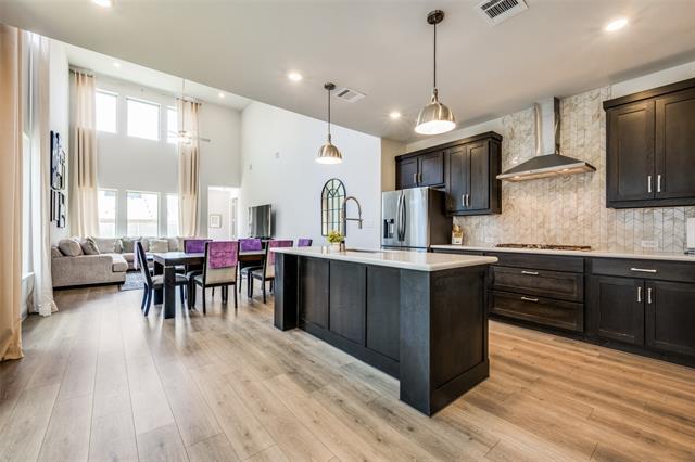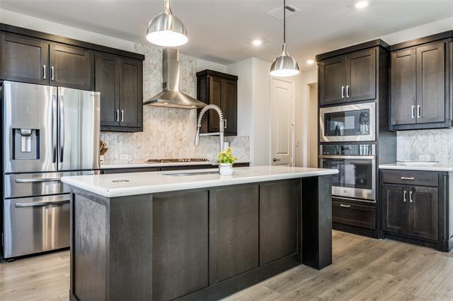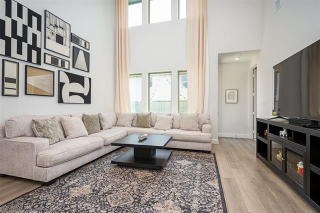 Beautiful home for rent located in HARVEST community!! This North facing home greets you with phenomenal warm natural light & an open layout.This home features a crisp, modern, open design and an inviting extended foyer with wood floors leading seamlessly into the open kitchen, casual dining area and expansive two-story living room. Gourmet kitchen with quartz countertops, pendent lights,designer backsplash and 5 burner cooktop.Primary and a guest suite downstairs with 2 full bath ideal for visiting guests or in-law suite Upstairs, two more bedrooms, a full bathroom, and a charming game room overlooking the gathering room below, offering a perfect retreat for entertainment. Blinds installed throughout. REFRIGERATOR and WASHER DRYER included! Walking distance to Award-winning Argyle West Elementary School and community offers an abundance of indoor and outdoor spaces to relax, meet up, exercise, celebrate or just grab a cup of coffee at the historic yellow farmhouse.Tenants enjoy all amenities. ARGYLE ISD!!