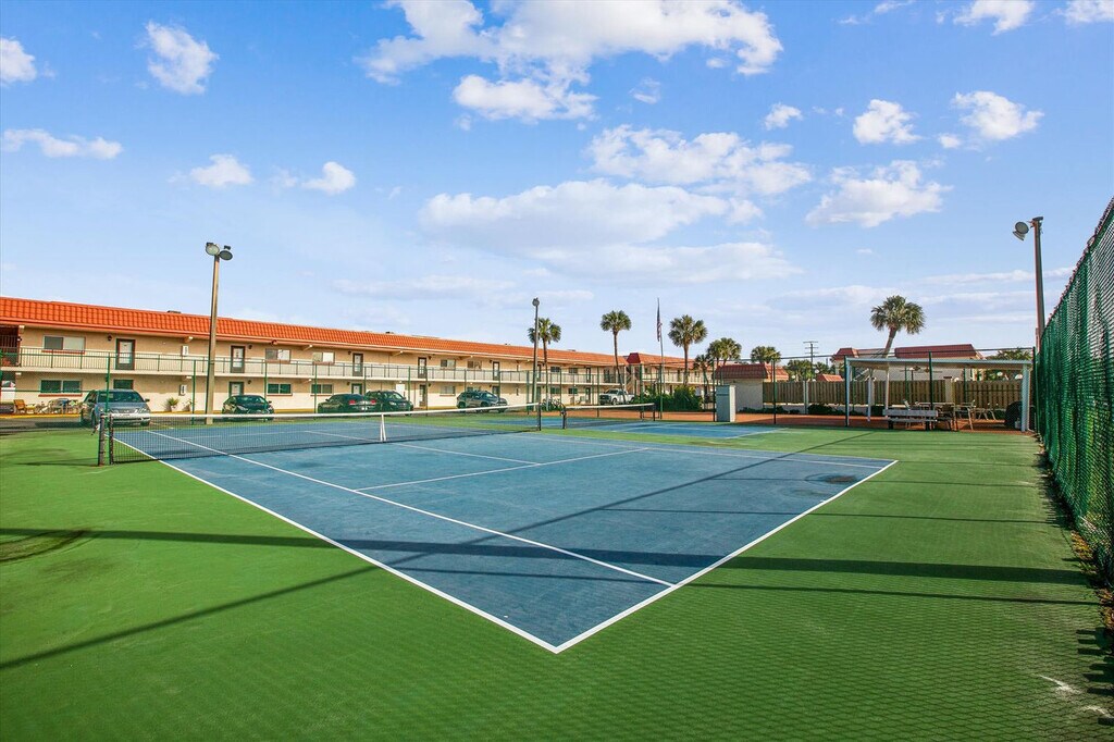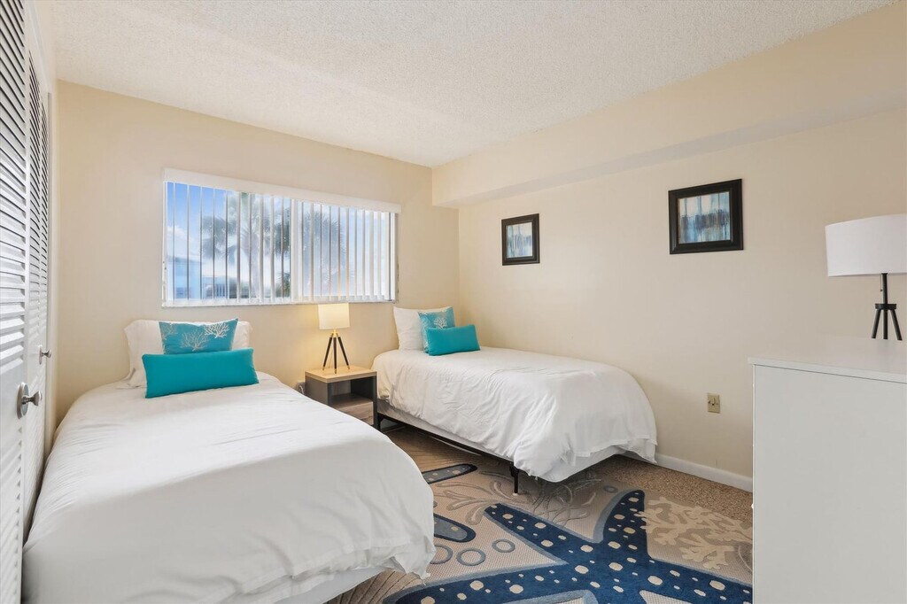 Feel at home in this charming and beautifully decorated 2-bedroom, 2-bath condo in St. Augustine, providing an affordable retreat for up to six guests. This delightful condo combines comfort with convenience. The inviting living room features a comfortable couch and a flat-screen TV. The fully stocked kitchen is ready for meal preparation with essentials including a microwave, coffee maker, and large walk-in pantry stocked with cookware, utensils, and a spice rack. A full-size washer and dryer are onsite for easy laundry care during your stay. All linens and bath towels are supplied for your convenience. Small-boat parking is available on-site near Building A, ideal for boaters and water enthusiasts. The Intracoastal Waterway boat ramp is just down the block. One small dog is allowed with a pet fee. This condo is perfectly positioned to offer easy access to everything needed for a memorable vacation, from relaxing by the pool and enjoying tennis courts to strolling just a short distance to the beach. Explore the historic and cultural gems of St. Augustine with ease. Visit Castillo de San Marcos, climb the iconic St. Augustine Lighthouse, experience the storytelling at The Old Jail, enjoy vibrant shopping and dining on St. George Street, discover architectural beauty at Flagler College and the Lightner Museum, or immerse yourself in history at the Fountain of Youth Archaeological Park. A car is essential for getting around during your stay, allowing you to easily explore nearby attractions and access amenities. Quiet hours are observed between 10 PM and 8 AM. [SI]
