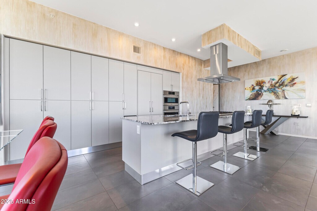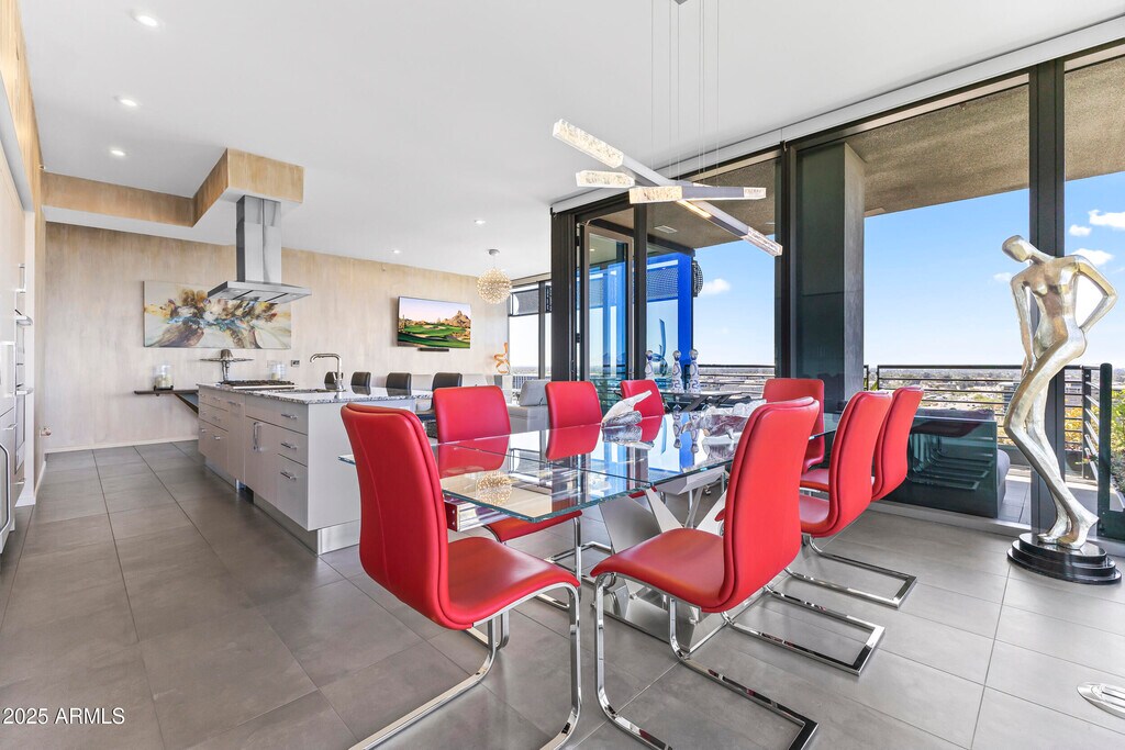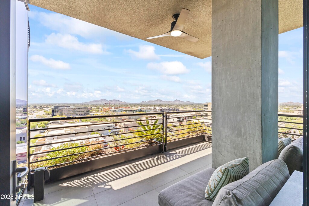 Turn key Penthouse top floor! SW Corner,views of the valley,mountains,city lights and sunsets! Artwork and some other furniture items are excluded,details upon request. Might the best view of any two bedroom home at Optima 7180. Nicely appointed,tastefully designed interior finishes. View,view,view,ten foot ceilings and large floor to ceiling glass,large open spaces! World-class retail,dining,& entertainment are to be enjoyed right across the street at Scottsdale Quarter and Kierland Commons! Enjoy dog runs,bocce,racquet,& b-ball,party room,fitness & business center,party & theatre room,& golf simulator. Or perhaps you will head up to the Sky Deck for the fire pits,spa,cold plunge,yoga