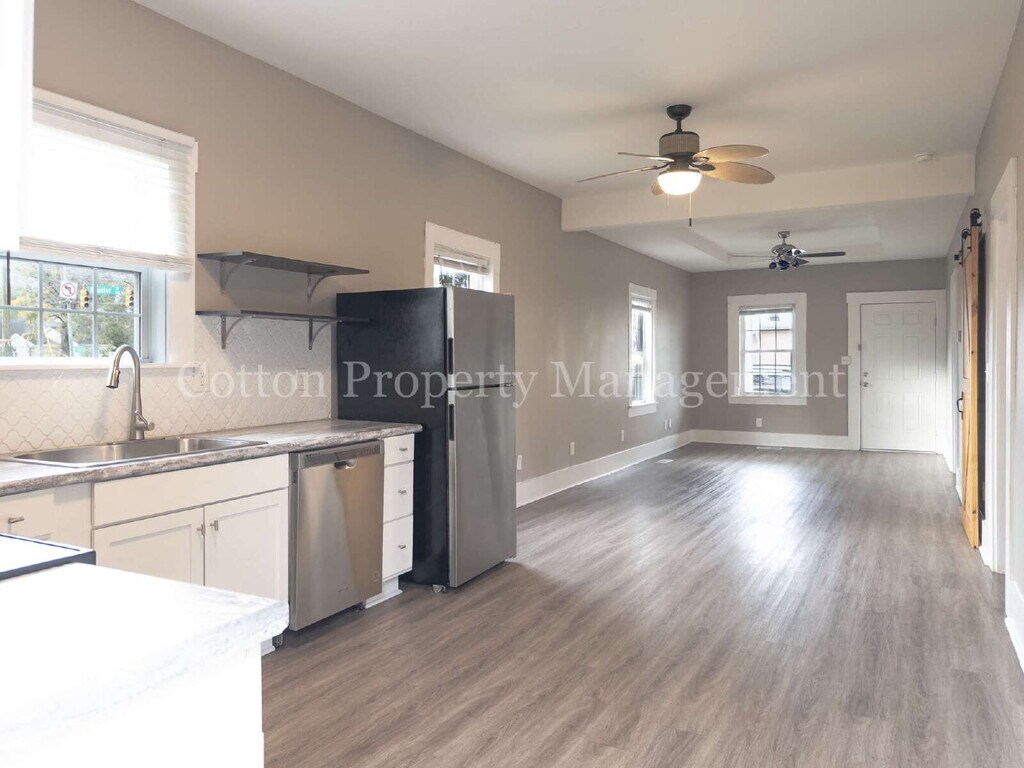 Beautifully renovated home in central location in downtown Wilmington! LVP flooring throughout the home, stainless steel appliance package in kitchen, with smooth top range, built in microwave and tile backsplash. Large living room with plenty of natural lighting and decorative barn door on hall bathroom. Guest bedroom in front of home and primary bedroom off of the kitchen. Fenced in backyard with six foot privacy fencing. Washer/dryer hookups are provided (resident to supply appliances) *Pet friendly - (2) Pet Limit with applicable fees and pet rent. **50% off the 1st month's rent with approved application and move in date within 30 days. Professionally Managed by Cotton Property ManagementLuxury Vinyl Flooring