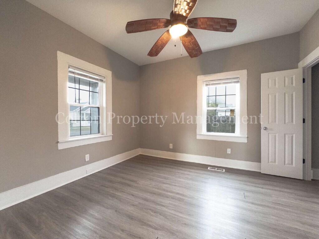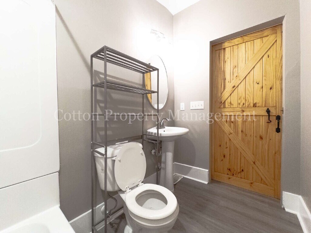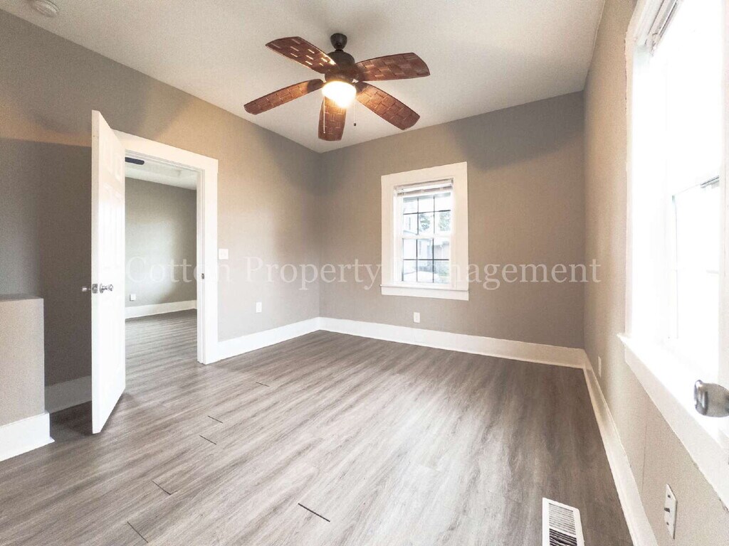 Beautifully renovated home in central location in downtown Wilmington! LVP flooring throughout the home, stainless steel appliance package in kitchen, with smooth top range, built in microwave and tile backsplash. Large living room with plenty of natural lighting and decorative barn door on hall bathroom. Guest bedroom in front of home and primary bedroom off of the kitchen. Fenced in backyard with six foot privacy fencing. Washer/dryer hookups are provided (resident to supply appliances) *Pet friendly - (2) Pet Limit with applicable fees and pet rent. **50% off the 1st month's rent with approved application and move in date within 30 days. Professionally Managed by Cotton Property Management