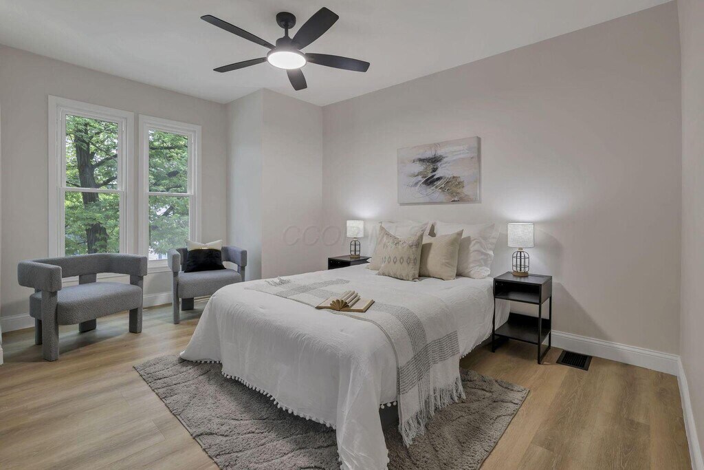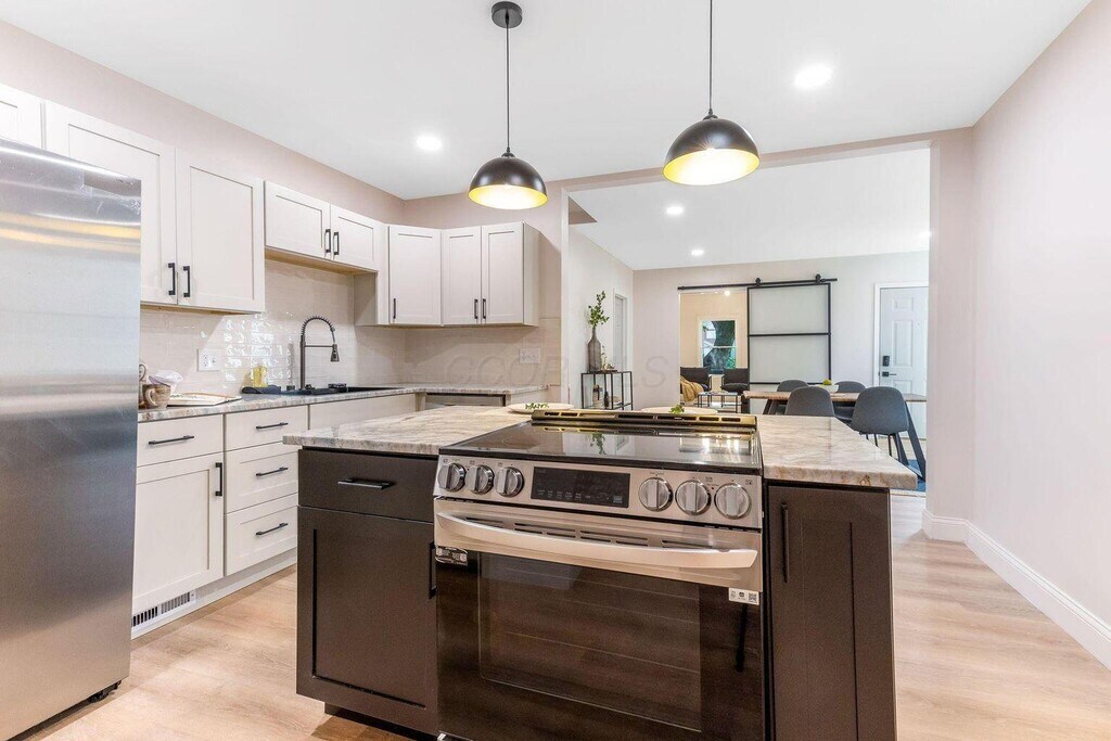 Welcome Home! This completely remodeled home located just minutes from downtown Columbus, Scioto Audubon Metro Park, museums, the Scioto River, and sports complexes – is fully furnished or unfurnished boasting 3-4 bedrooms, 2-baths and is situated in the historic Franklinton community. The modern kitchen offers new stainless steel appliances, including an electric stove, refrigerator, dishwasher, garbage disposal, and also features a large island, and terrific cabinet storage! The kitchen flows seamlessly into the living room, dining room and/or fenced backyard for easy indoor-outdoor living! This lovely home features three spacious upstairs bedrooms with new LVT flooring and natural light throughout, plus a flexible space for a fourth bedroom for extra living space or a dedicated home office! Two full updated bathrooms with sleek tile floors and modern fixtures create a comfortable, spa-like vibe! You're sure to enjoy the private fenced in backyard with a back porch for relaxing and a detached remote entry two-car garage providing additional privacy and storage! A full unfinished basement offers storage alternatives as well! NO SMOKING, NO PETS, Tenant responsible for all utilities including lawn care and snow removal. To schedule your showing visit Access More Property Management online today!