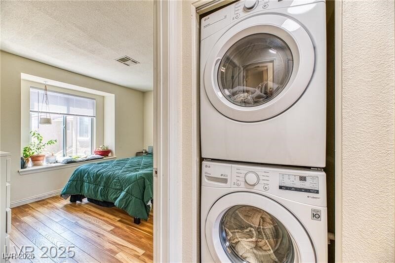 Charming 1-bedroom-1-bathroom condo with covered parking and great amenities! Prime location off of Summerlin Parkway-215 beltway. Unit is located on the 2nd floor offering mountain views from the balcony. Vinyl flooring was recently installed & unit has been freshly painted. All appliances are included (washer/dryer recently replaced). Kitchen features granite countertops, a lovely garden window & dining area. Resort style amenities including 2 pools, park, BBQ area, clubhouse, fitness center & massive tennis courts. All buildings within the community were recently painted giving a fresh feel. HOA fees include water and trash!