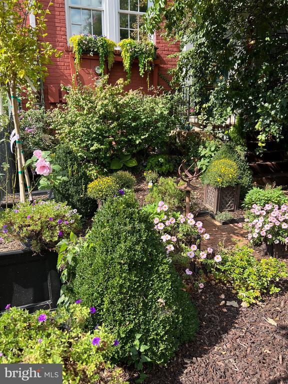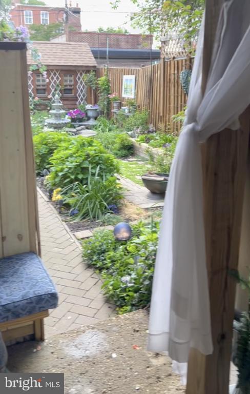 Welcome to 721 12th St SE—your urban oasis in the heart of DC, just blocks from Eastern Market. This meticulously renovated 2-bedroom home blends historic charm with modern, eco-friendly living and opens to a serene private garden retreat. Inside, the inviting living area features a wood-burning fireplace framed by custom built-in bookcases. The chef’s kitchen includes cherry cabinets, granite countertops, and high-end Energy Star appliances, including a French door refrigerator and Bosch dishwasher. The spa-like bath offers a deep soaking tub and rainfall shower, while hardwood floors and restored trim and molding run throughout. Outside, enjoy your private patio oasis with rocking chairs, a bubbling fountain, and a pond with rescue turtles and goldfish. Entertain easily with a Weber grill, fire pit, and ample seating surrounded by roses and seasonal blooms. With updated electrical, plumbing, HVAC, and tankless hot water, plus easy access to Metro, grocery stores, and Capitol Hill amenities, this home offers comfort, character, and convenience.