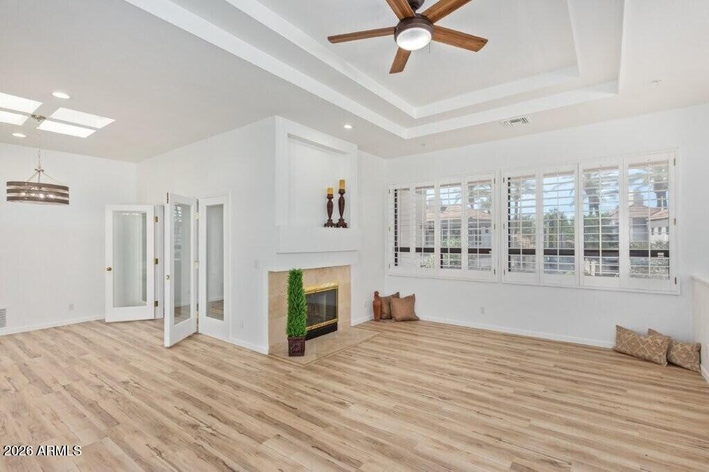 GAINEY RANCH Oasis-Bright Open Contemporary. 2 Beds+Office,2 Baths. High Ceilings. Gorgeous Flooring Throughout. Urban Loft/Carriage House Design (living on one level above the garage,level 2). Kitchen has white cabinets,granite,bar,farmhouse sink,Sub-Zero,and breakfast room opening to the large deck outdoor space. Great Room has huge windows,formal dining,skylight,and 2-way wood burning fireplace shared with a dual french-door entry Office/Den. Master Suite also has a dual-door entry,access to a 2nd balcony,soaking-tub,dual-sinks,and a walk-in closet. Large utility/laundry and 2Car Garage with storage. Gainey Ranch offers 24hr man-gated/roaming security. Tenants have access to Gainey Estate Club: Tennis,Pickleball,Pool,Spa,Fitness. Scottsdale's Finest Lifestyle.