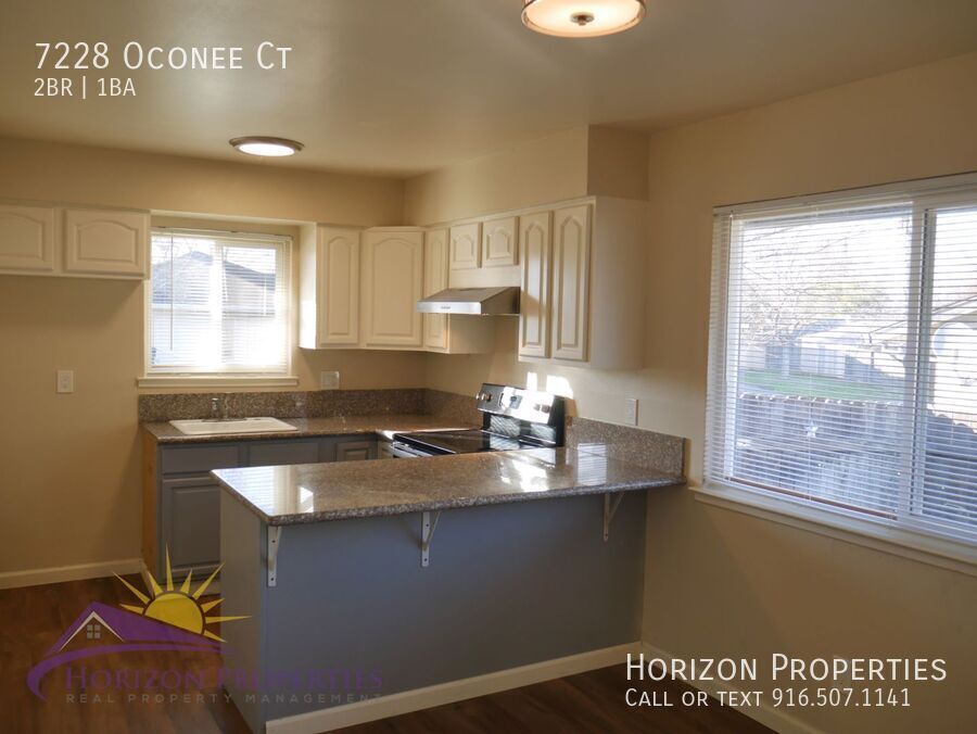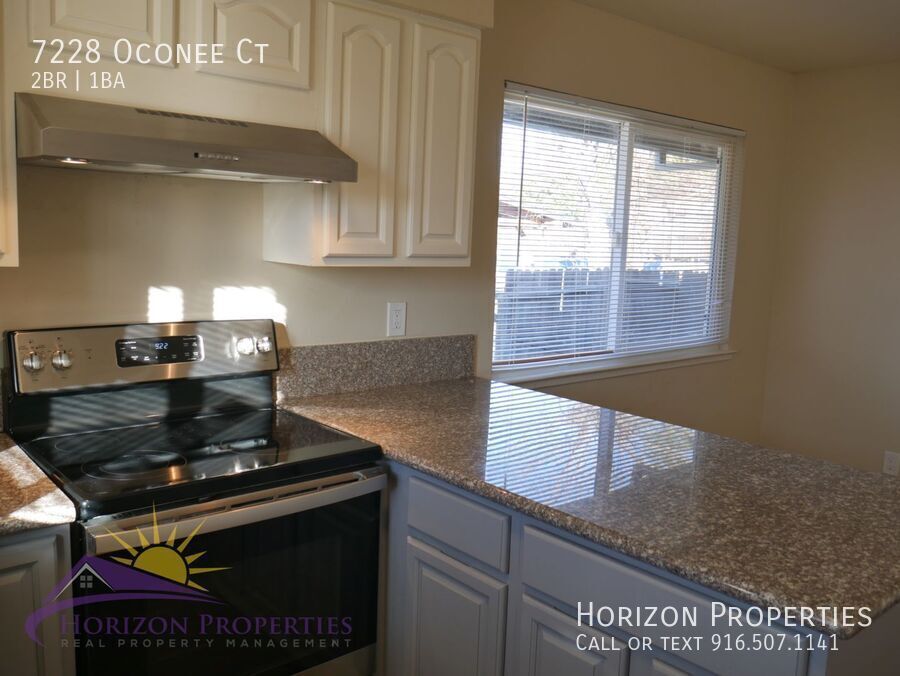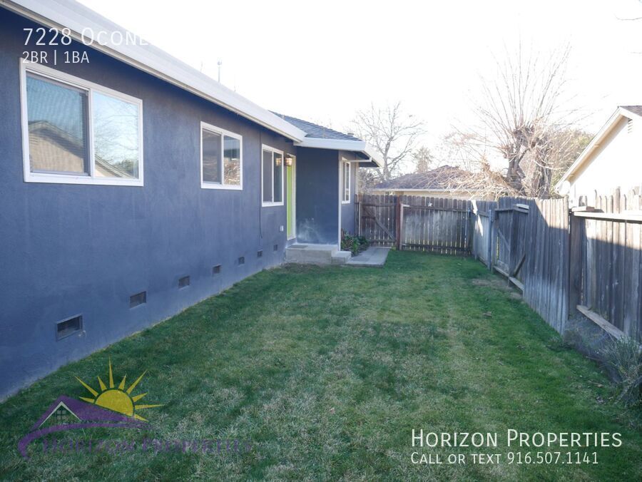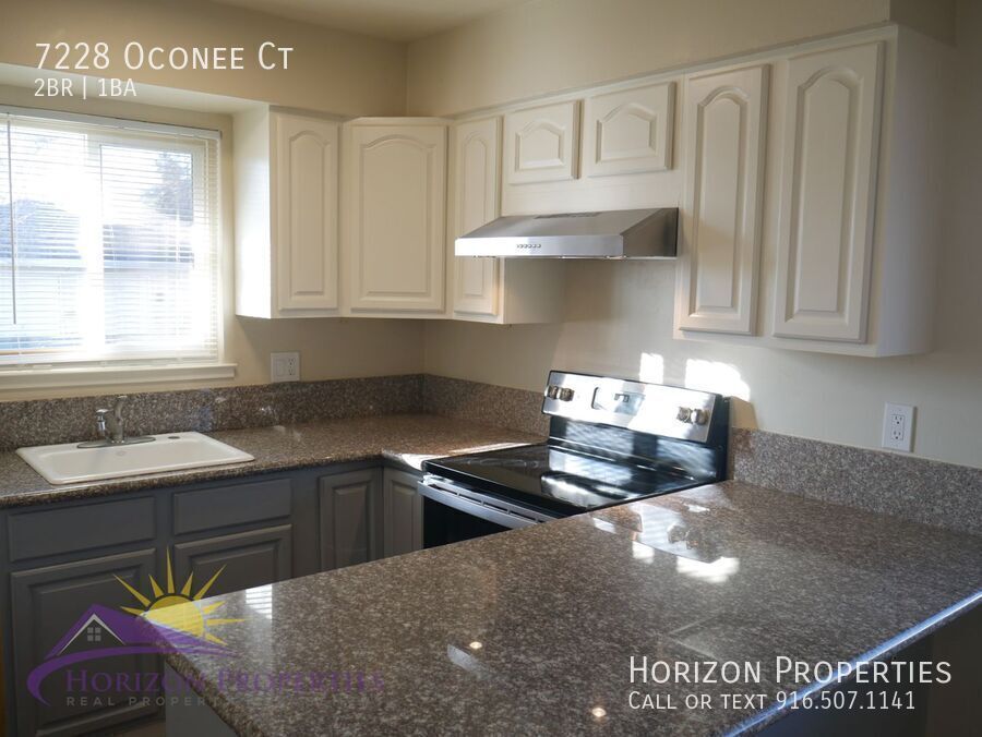 Rental Qualifications and Policies for this property: • FICO score of 695 or higher • Income of three times the rent • No evictions nor open bankruptcies • Owner will not accept a cosigner • Security deposit must be received within 24 hours of approved application unless other arrangements are made in advance • Must take possession of the property within two weeks of approved application • Up to two cats are allowed with $45 a month pet rent • No smoking of any kind is allowed in the home • Owner pays for water, sewer and trash • Available with a ten month lease term Near Sunrise Blvd. and Old Auburn Road in Sunrise Estates, Citrus Heights, this one-story duplex offers two bedrooms, one full bathroom, laminate floors, custom paint, dual pane windows, and miniblinds throughout 827 square feet of living space. This home has central heat and air conditioning. The living room has recessed lighting. There is also a dining room with a overhead light. The eat-in kitchen has wood cabinets, granite counters, lazy susan, overhead lighting, and is equipped with: • refrigerator • stainless steel, glass-top electric range • sink with garbage disposal The bedrooms have overhead lighting and double-door closets. The bathroom has a quartz vanity and tiled shower over tub with dual showerheads. The one-car garage has an automatic door opener, built-in shelving, built-in cabinet, and a laundry area with electric dryer hookup. The large, fenced yard and comes with lawn mowing service, and is equipped with automatic timer sprinklers in both front and rear. This home is located in the San Juan Unified School District. • Yard maintenance is owner responsibility. As we are first-come first-serve on application processing, you may wish to apply immediately if you think you want to rent this property. We strongly encourage you to view the property prior to completing an application. Security deposit must be received within 24 hours of approved application unless other arrangements are made in advance. You must take possession of the property within two weeks of your approved application. If you have any questions or would like to make sure you meet the minimum criteria for this property, please call prior to applying. We do business in accordance with all State and Federal Fair Housing Laws. All listing information is subject to change. Cal DRE Broker #00948825 Cal DRE Corporate #01957496 ***Please, do not disturb the residents.*** Central Heat & Air