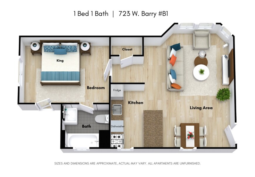 Price Availability Date Unit Sq Ft Deposit $1,950 December 1, 2025 B3 - 723 W Barry Ave 600 sq ft $395 Model Amenities and Features