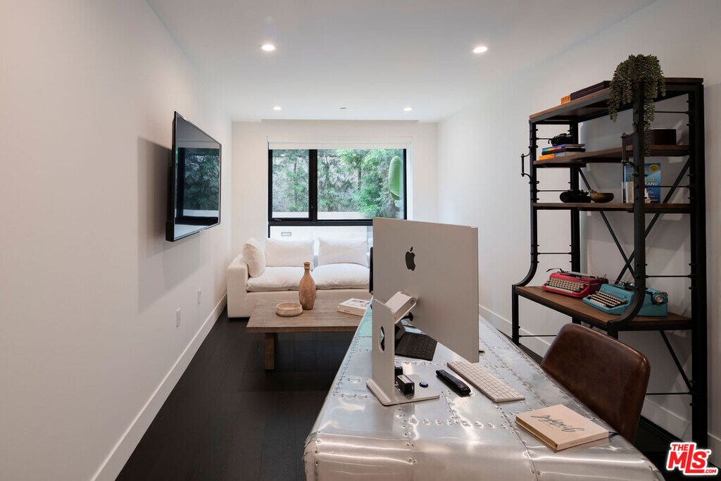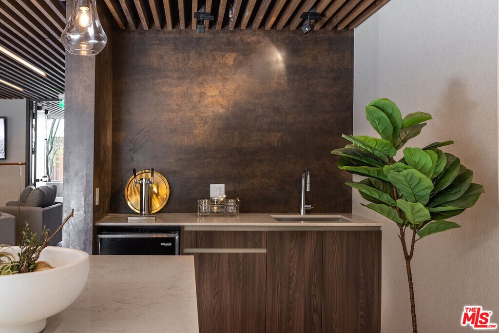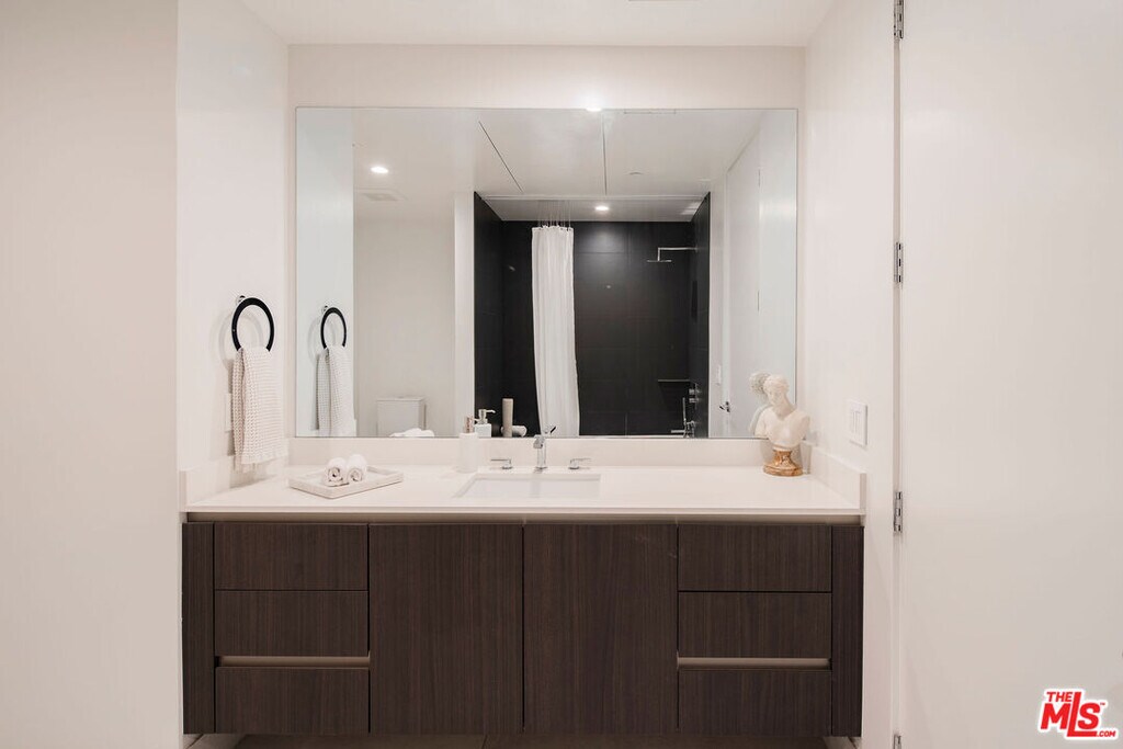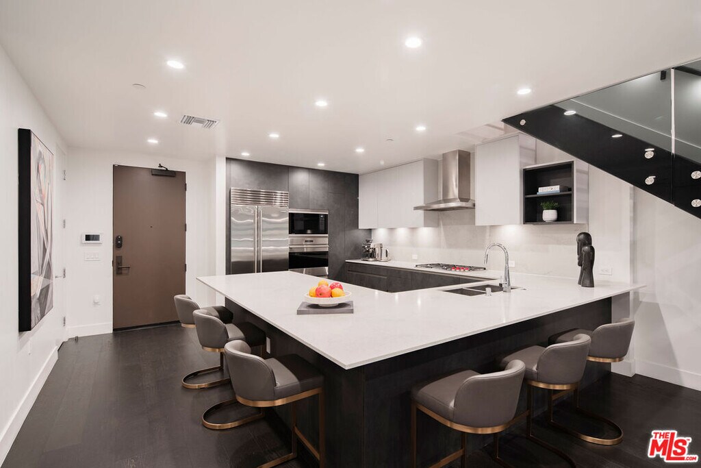 Discover refined urban living in this stunning, dual-level home, offering 1 bedroom, 1.5 baths, and a private rooftop terrace with sweeping city views. Ideally located just steps from the iconic Melrose Place in one of Los Angeles' most vibrant and walkable neighborhoods, this residence epitomizes modern sophistication. Throughout the home, Noir 7 wide-plank hardwood flooring sets a dramatic tone, complemented by a sleek, modern palette of dark and light grey finishes. The open-concept kitchen is a contemporary masterpiece, featuring dark lead resin and matte grey Snaidero cabinetry, elegant Caesar stone countertops, and a premium Sub-Zero and Wolf appliance suite, perfect for both everyday living and stylish entertaining. The baths are equally impressive, adorned with bright, pure white Caesar stone countertops, while the master bath offers a serene retreat with a standalone soaking tub. This thoughtfully designed home blends luxury and comfort in every detail. This unit comes fully furnished, with unfurnished options also available upon request. Enjoy the convenience and luxury of concierge service-person, ready to cater to your every need. EV charging onsite at no additional cost. Conveniently located in the heart of West Hollywood, this property is just steps away from trendy boutiques, world-class dining, and vibrant entertainment options. MLS# 25546547