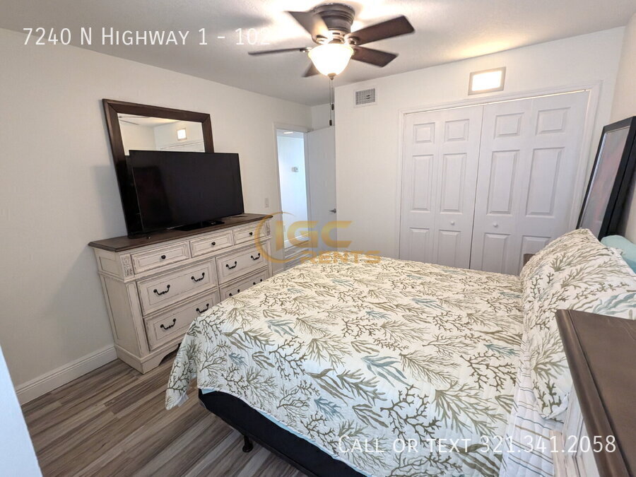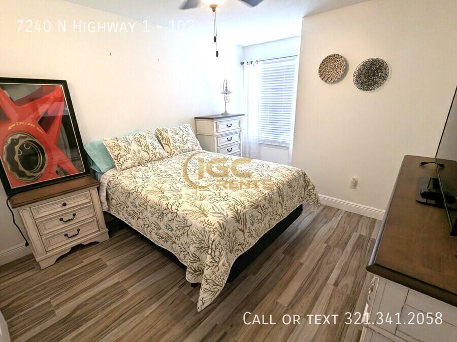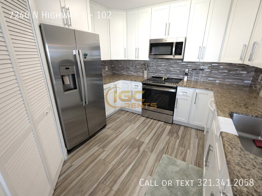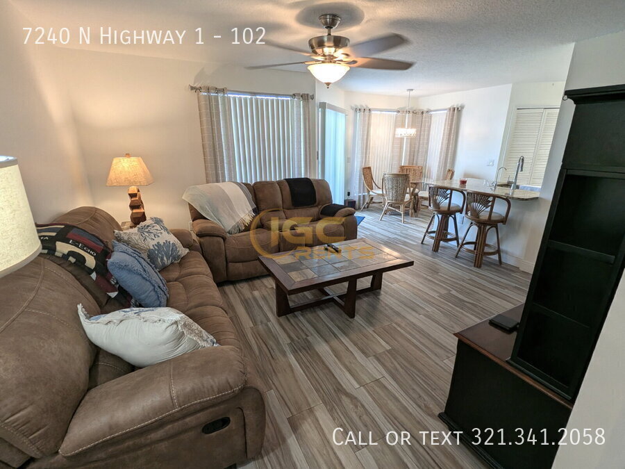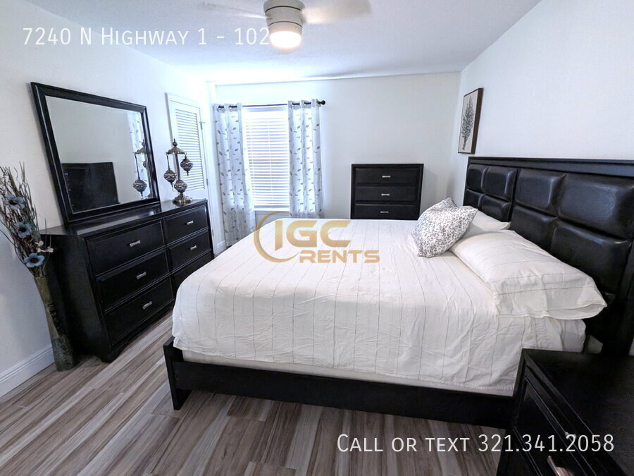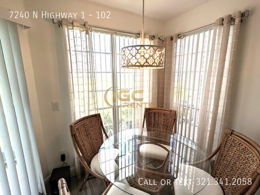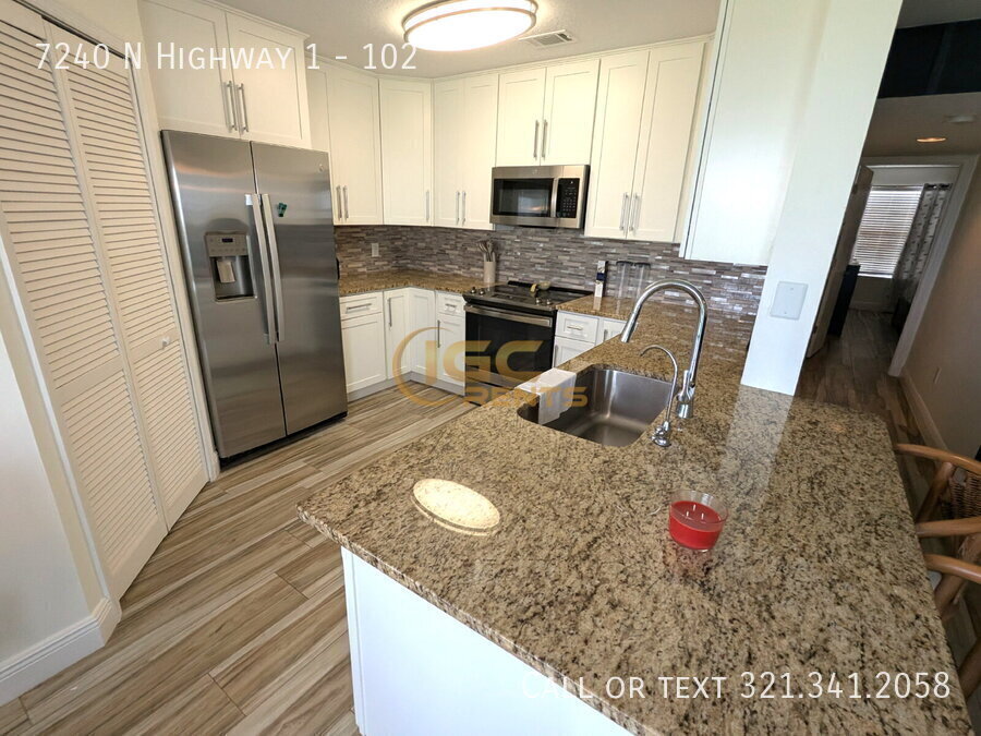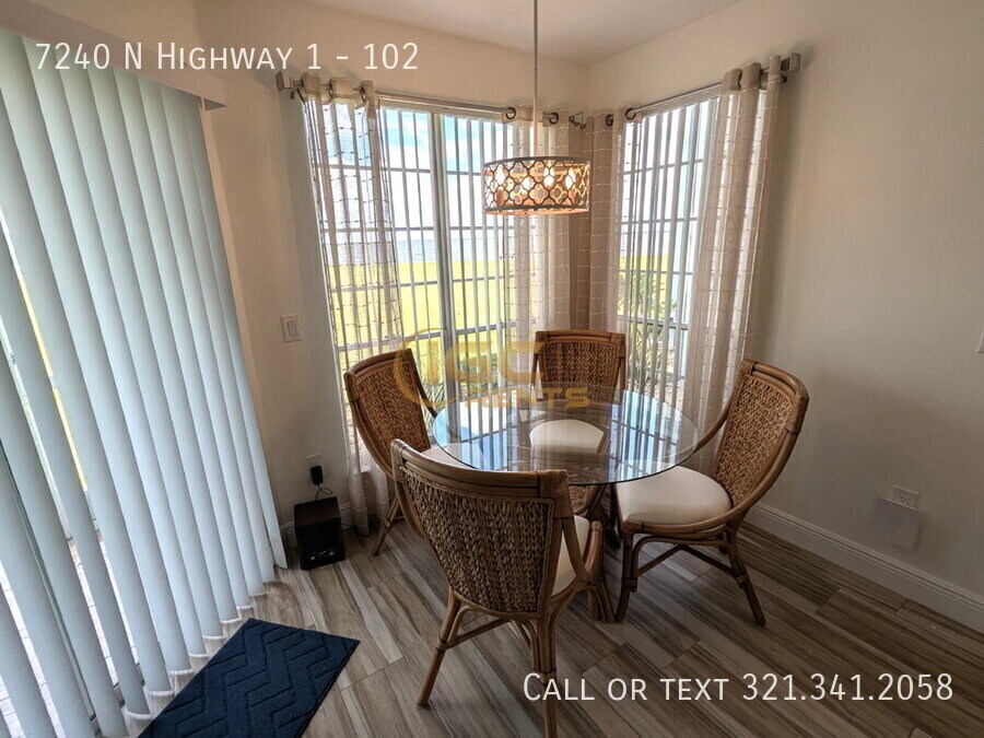 Engage with the serene beauty of Cocoa, Florida, at this stunning waterfront condo, perfectly situated at 7240 N Highway 1, #102. This 1,002 square-foot retreat offers two spacious bedrooms and two full bathrooms, designed to provide comfort and tranquility. Step into a world of elegance with stylish granite countertops that add a touch of luxury to your culinary adventures. Fully furnished, this condo invites you to settle in with ease and start enjoying the vibrant coastal lifestyle immediately. Wake up to breathtaking water views, making every morning a delightful experience. The thoughtfully designed space maximizes every square foot, ensuring a harmonious blend of functionality and charm. Relax and unwind in the inviting living area, perfect for hosting gatherings or enjoying quiet moments. Explore nearby attractions or indulge in water activities, all within reach from this prime location. Embrace the soothing sounds and sights of waterfront living, creating a peaceful oasis you'll love coming home to. Your dream condo awaits, offering a unique opportunity to relish the best of Cocoa's natural beauty and modern conveniences.Built In Microwave Community Pool Pickleball Pickleball Courts Shuffle Board