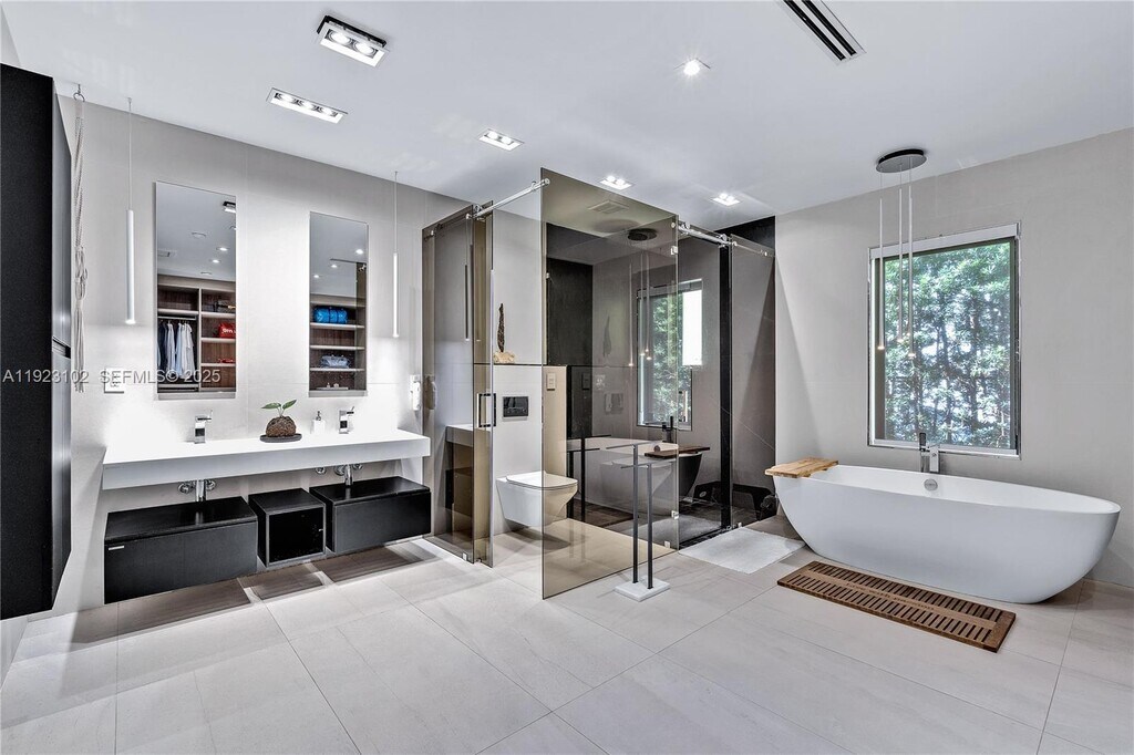 Tropical oasis in the heart of Miami Beach! This stunning modern home has been recently renovated with impeccable taste and premium appliances. The gorgeous pool area features a sleek, modern design surrounded by beautiful lush landscaping, creating a serene private retreat. The magnificent primary bedroom includes a secluded patio and an exquisite custom-made closet and bathroom. Two additional generously sized bedrooms each offer full en-suite bathrooms. Enjoy 11 ft. ceilings, Italian ceramic floors, and a Mia Cucina custom kitchen and closets throughout. Floor-to-ceiling window walls fill the home with natural light and provide seamless indoor-outdoor living. Located in an exceptionally safe neighborhood with little to no thru traffic, this property offers a peaceful, private environment ideal for families and anyone seeking a calm lifestyle. Fisher Park is just down the street, perfect for outdoor activities, while the home remains only a short drive from Miami Beach’s top restaurants, beach clubs, and entertainment. An unbeatable blend of tranquility and convenience.