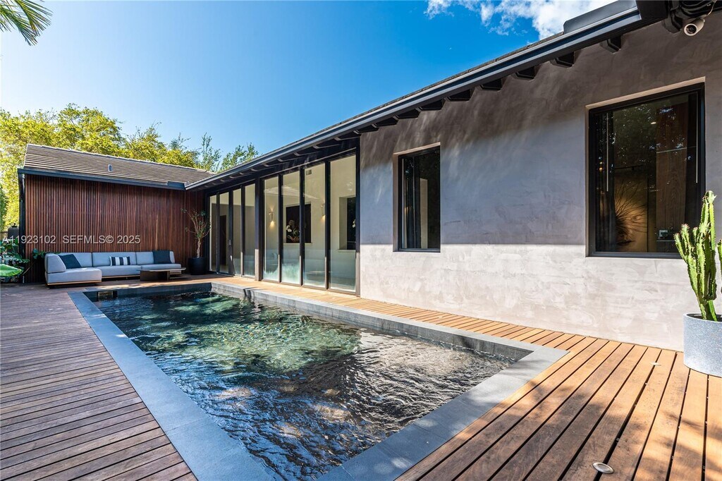 Tropical oasis in the vibrant heart of Miami Beach! This stunning modern home has been recently renovated with impeccable taste and premium appliances. Enjoy a magnificent primary bedroom with a secluded patio and the exquisite touch of a custom-made primary closet/bathroom, along with two generously sized bedrooms boasting full bathrooms. Revel in the 11ft high ceilings, Italian ceramic floors, Mia Cucina custom kitchen & closets. The property's window walls flood the space with natural light, while the wooden pool deck and lush landscaping create the perfect retreat. Nestled in a secure and private neighborhood, this home offers an exceptional living experience in an unbeatable location. This property is also available fully furnished. Contact the listing agent for more details. ................................................................................. Call Claudia If there are any other properties that you'd like to know more about, please send me the addresses and I'll be happy to research them and provide you with additional information. ... Claudia Salguero English-Spanish ... Courtesy of Douglas Elliman