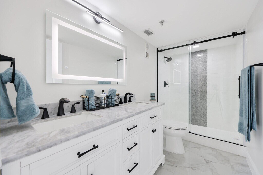Welcome to your dream 2 bed, 2 bath LARGE FLOOR PLAN condo in a vibrant 55+ lifestyle community! This gem has undergone a full remodel, ensuring a modern living space where you will be the first resident. The open-concept kitchen is a showstopper, featuring stunning quartz countertops and custom cabinetry. Beautifully tiled floors add elegance throughout the home. Custom ceiling lighting brightens up the living area. Enjoy breathtaking 7th floor views of the lake and surrounding homes from your living space or balcony. Both bathrooms have been beautifully transformed with taste and functionality. Double vanity in the primary. The beautiful tile floors extend into the bedrooms as well as custom walk-in closets. No detail has been overlooked, from fresh paint to the smooth ceilings.