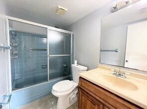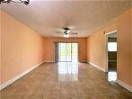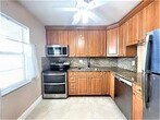 Beautiful and spacious first floor condo featuring two bedrooms and two bathrooms. The remodeled kitchen offers ample cabinetry,granite countertops and stainless steel appliances. Modern tile flooring extends throughout the condo,enhancing its clean and contemporary feel. The bright,open living and dining area provide an inviting space for relaxation and entertaining. The large primary bedroom includes a ceiling fan for added comfort,while the guest bedroom features a large window that fills the room with natural light. An enlarged balcony offers additional living space to enjoy. This is a 55+ community conveniently located close to Publix,major restaurants and public transportation. MLS ID F10537512