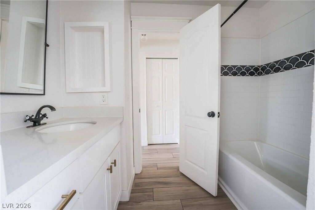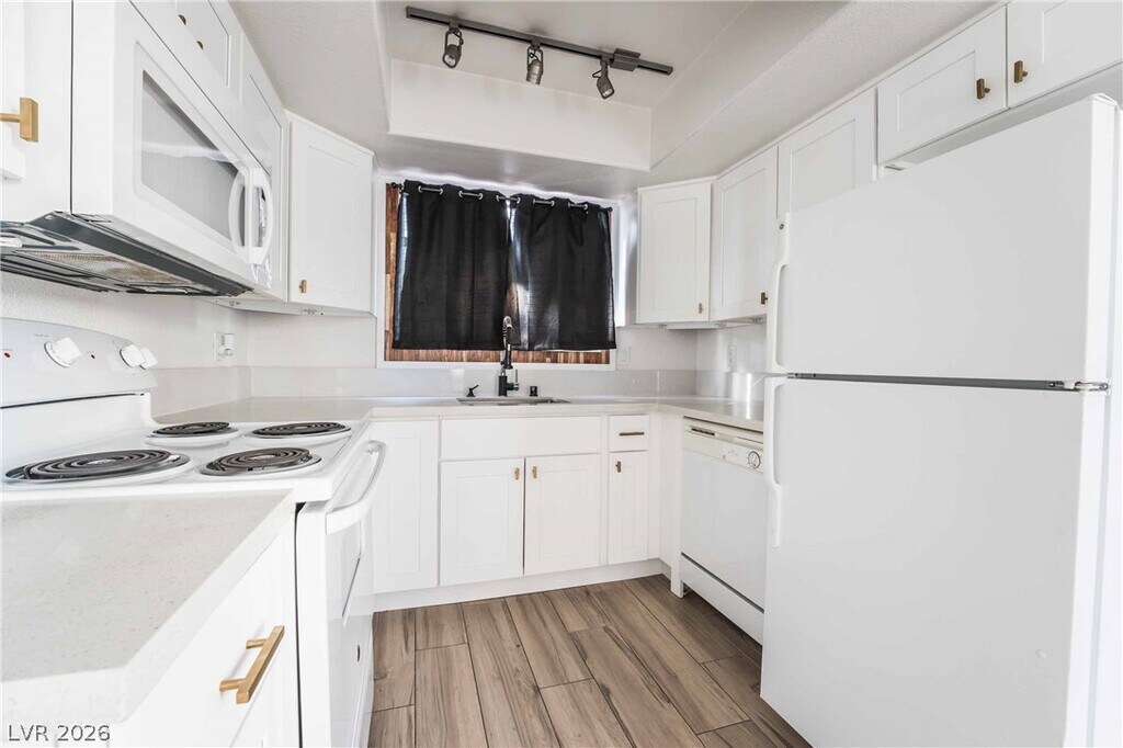 This well-appointed first-floor condo offers a warm and functional layout with stylish wood-like tile flooring flowing throughout the main living areas. The kitchen features granite countertops, white cabinetry, a garden window that brings in natural light, and a built-in microwave, opening to a comfortable dining space accented by classic shutters. The living area provides an inviting setting for relaxing or entertaining, while the bedroom offers generous space, including a cozy reading nook and a walk-in closet for ample storage. The bathroom is designed with a granite vanity, updated lighting, and a large soaking tub. Conveniently located near shopping, dining, and everyday amenities, this home blends comfort with accessibility. MLS ID 2769422
