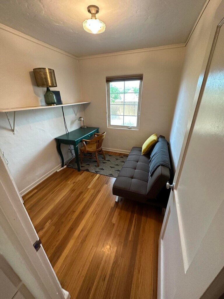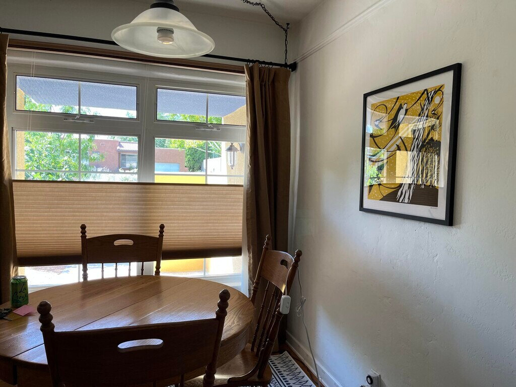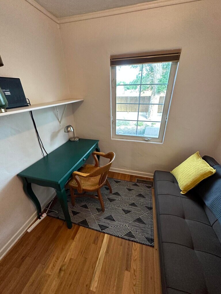 Welcome to this fully-furnished, all utilities paid gem located in Albuquerque, New Mexico. This house near Carlisle and Lomas Blvd offers a convenient and comfortable living space, currently set up with 2 bedrooms and 1 office but with flexibility to accommodate your needs. In bedroom #1, you'll find a queen-sized bed, a closet, a dresser, a nightstand, and a ceiling fan for your comfort. Bedroom #2 offers similar amenities. The bathroom features a full tub-shower combo, a pedestal sink, additional storage cabinets, and a toilet. Indoor amenities include central A/C, a home security system, and fast wifi throughout the house. The living room is tastefully furnished. The house has beautiful hardwood floors and tile in the kitchen and bathroom. The kitchen is equipped with traditional granite and wood countertops, a dishwasher, and most other necessaty kitchen supplies. The dining area is set up with a large kitchen table. Additional rooms include a closet with a sofa that turns into a single bed, a desk, and a computer chair, providing extra space for work or relaxation. The home has a separate laundry room. Step outside to the front patio or the huge backyard with big trees and a great view of the Sandias, furnished with outdoor furniture and a fire pit for outdoor relaxation. Parking is made easy with a one-car garage and off-street parking. Located in a super safe neighborhood frequented by professors and employees of the University, this rental is close to Summit and Bataan Memorial parks, offering convenient access to outdoor spaces for recreation and relaxation. The yard is fenced completely and has a gate. This is a safe, community-focused neighborhood where people walk their dogs and know one another. Don't miss out on this unique, furnished property in Albuquerque. Contact us today to schedule a viewing and make this your new home.