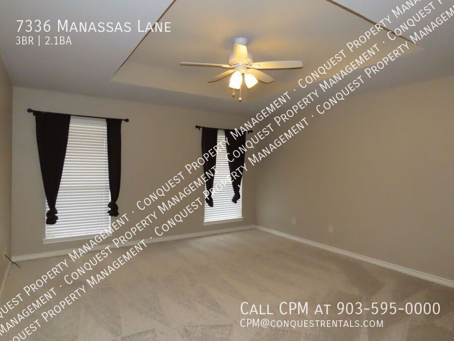 Please visit our website or use this link to schedule a self-tour. This three-bedroom, two-and-a-half bathroom, two-car garage home is an absolute dream! This gorgeous, two-story brick home features neutral-toned tile flooring, gorgeous LVP and carpet in all of the bedrooms. The home welcomes all in a classic entry area with a beautiful chandelier light fixture hanging from the high ceiling. The spacious living room highlights a cozy wood-burning fireplace. The dining room is spectacular, with its large windows and French doors. The open kitchen features ample cabinet space, a bright and cheery breakfast area, and comes equipped with an electric oven/range, built-in microwave, dishwasher and stainless steel refrigerator (not guaranteed). The staircase is spectacular and leads to two bedrooms and a large bonus room with barn doors. The master bedroom, located on the main floor, is spacious and includes a tray ceiling. The master bath offers dual sinks in the vanity, a garden tub, a stand-in shower, a large walk-in closet and a water closet. This property also offers the convenience of a laundry room, linen storage and central heat and air. The backyard boasts a beautiful covered porch and is surrounded by a privacy-fenced backyard. Welcome home! ***BE AWARE OF SCAMS! CPM is the only agent for the owner/landlord of this property. The accurate rent and security deposit amount is listed on our website at . Please call our office to verify any information at . CPM's office address is 1917 S. Beckham Ave. Tyler, TX 75701*** The school district is: Tyler ISD The schools are: Jack Elementary, Hubbard Middle, and Tyler Legacy HS There is approximately 2,600 square feet of living space. No utilities are provided; the tenant is responsible for all. The Pet Policy for this property is: Pets 60lbs or less If you have pets, before you submit your application(s), please confirm that your kind/breed/size pets are allowed at this property. You are required to complete a application* for each pet when you submit your rental application. *Additional charge, per pet, applies. To complete all pet screenings, follow this link: and ‘share’ each completed profile with CPM. Depending on the outcome of your Pet Screening application(s), you may be subject to pay an additional pet deposit, carry additional liability insurance and/or pay Pet Rent per month. Once approved, a minimum of $300 pet deposit, per pet, will be required. Pet deposits are fully refundable after move-out if carpets are professionally cleaned and no damage is incurred. If you have a Service or Support Animal, please complete a separate screening application for each animal. To complete all screenings, go to and ‘share’ each completed Assistance Animal profile with CPM. The Conquest Property Management, Inc. Tenant Advantage Program (TAP) is designed to provide convenient and valuable professional services to our residents. By applying to lease with CPM, tenants agree to be auto-enrolled in the program and agree to pay an additional $25 each month, payable with rent. This program includes benefits such as Filter Delivery, Online Tenant Portal, Waived Late Fees, Utility Concierge, Inspection Reschedule and more! Participation in this program may vary due to the property specifications. The cost of the program is all-inclusive. CPM also requires all tenants carry liability insurance ($100,000) for damage to the landlord’s property for no less than the following causes of loss: fire, smoke, explosion, backup or overflow of sewer, drain or sump, and water damage during the term of their lease. Applicant agrees to either provide proof of insurance prior to move-in date or be automatically enrolled in a group policy (additional fees apply). Applicant agrees to name CPM as an 'Interested Party' on the insurance policy. Application fees are non-refundable. CPM will process all complete applications upon receipt. Security Deposit must be paid within 2 hours of application approval. If the deposit is not paid in full in the allotted time frame, the property will be leased to the next qualified applicant. Please note: The security deposit is non-refundable until the end of the lease term. Cancellations will result in the forfeiture of the security deposit. The availability date for this property is the best estimate at the time of this listing. Based on the potential for unforeseen circumstances, the date is subject to change. Conquest Property Management, Inc. will update this property listing, as information becomes available. Square footage per SCAD, tenant to satisfy. Please visit our website or use this link to schedule a self-tour. 2 Car Garage Ample Kitchen Cabinet Space Blinds Breakfast Area Built In Microwave Butler's Pantry Carpet In Bedrooms Central Heat & Air Covered Porch Dual Sinks In Master Bath Electric Oven/Range French Doors Garden Tub Gas Water Heater Large Pantry Large Walk In Closets Large Windows Laundry Room Located In South Tyler None Stainless Steel Refrigerator (Not Guaranteed) Stand In Shower Tray Ceiling In Master Bedroom Wood Burning Fireplace
