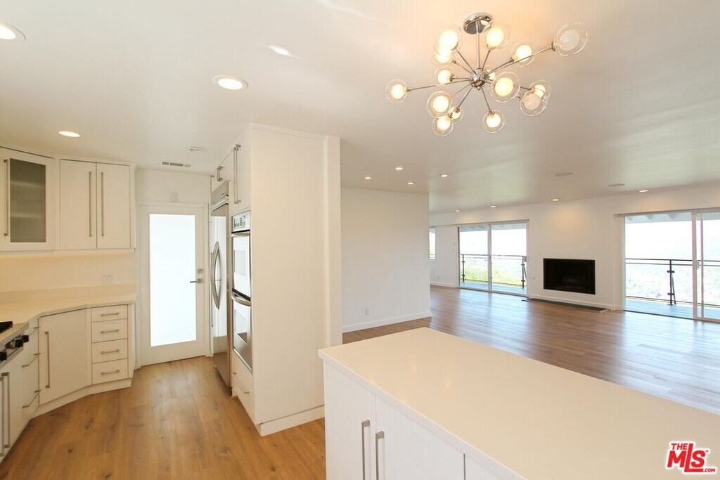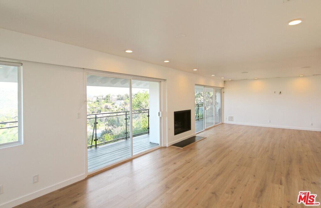 EXPLOSIVE VIEWS AS FAR AS THE EYE CAN SEE! CITY LIGHTS, THE HOLLYWOOD SIGN, AND MORE! Just moments from the top entrance to Runyon Canyon Park, this is a dream setting for hikers and anyone who craves that perfect blend of nature and city energy.Inside, the open entertainer's floor boasts newly updated flooring and lighting to set the tone, while smart home features including an energy saving Nest system, keypad entry, wired sound, home theatre capability, and Apple TV integration create a seamless, modern lifestyle. A fireplace adds warmth and ambiance, and dramatic walls of glass frame the sweeping city and mountain views, turning every sunset into a private show.The kitchen is sleek and well appointed with stainless steel appliances including a Viking stove and oven, and offering direct access to the refinished two car garage with washer and dryer for effortless convenience.The primary suite features a walk-in closet and a beautifully updated bath with a steam shower designed to unwind and indulge. Sliding doors open to a view deck where mornings feel serene and evenings feel exciting. The spacious guest bedroom is just opposite another stylishly updated bath and flows out to a newly refinished patio and BBQ. Set in a prime Hollywood Hills location near transportation, hiking, dining, shopping, and the best of the city's entertainment, this home delivers drama, sophistication, and undeniable allure. MLS# 25629871
