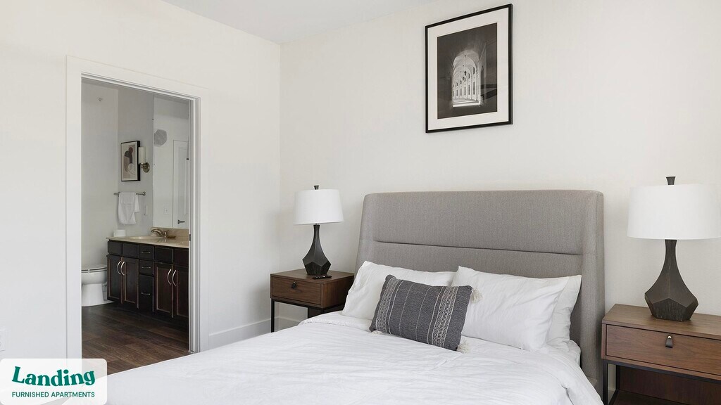 Landing offers flexible lease terms from weeks to months. Please always visit our website or contact us for the latest pricing & availability. Stay longer, save more: 6-Month Minimum base rent: starts at $1844/mo 12-Month Minimum base rent: starts at $1850/mo Landing offers flexible leases across a network of over 35,000 fully-furnished apartments throughout 375+ cities so you can rent on your terms, practically anywhere, and avoid the hassle of paying deposits or application fees. Visit to learn about all the benefits of a Landing membership, see our competitive up-to-date pricing, explore available apartments, take virtual tours, and make reservations online without jumping through traditional rental hoops. Landing's apartments at City North are designed for comfortable, easy living, with the ability to stay as long as you like. Experience living with Landing Every apartment is outfitted with all the modern essentials including: custom-designed furnishings, a fully-equipped kitchen with deluxe stainless steel appliances, a gourmet coffee maker, premium linens, Smart TVs, and incredibly fast, reliable internet for working from home. When you live with Landing, you'll enjoy a hassle-free experience with the added benefit of 24/7 access to our dedicated member experience team. Some of the nitty-gritty: a background check and proof of income are required; we're completely smoke-free; bundled utility packages and pricing vary based on length of stay; pet-friendly options available; listed price reflects a 12-month minimum stay.