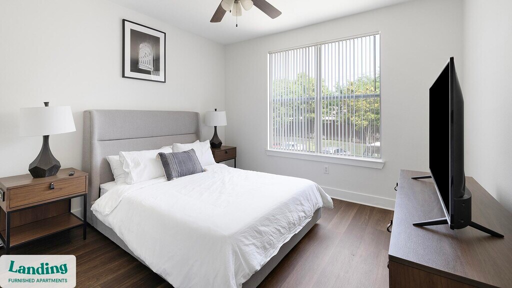 Landing offers flexible lease terms from weeks to months. Please always visit our website or contact us for the latest pricing & availability. Stay longer, save more: 6-Month Minimum base rent: starts at $2453/mo 12-Month Minimum base rent: starts at $2487/mo Landing offers flexible leases across a network of over 35,000 fully-furnished apartments throughout 375+ cities so you can rent on your terms, practically anywhere, and avoid the hassle of paying deposits or application fees. Visit to learn about all the benefits of a Landing membership, see our competitive up-to-date pricing, explore available apartments, take virtual tours, and make reservations online without jumping through traditional rental hoops. Landing's apartments at City North are designed for comfortable, easy living, with the ability to stay as long as you like. Experience living with Landing Every apartment is outfitted with all the modern essentials including: custom-designed furnishings, a fully-equipped kitchen with deluxe stainless steel appliances, a gourmet coffee maker, premium linens, Smart TVs, and incredibly fast, reliable internet for working from home. When you live with Landing, you'll enjoy a hassle-free experience with the added benefit of 24/7 access to our dedicated member experience team. Some of the nitty-gritty: a background check and proof of income are required; we're completely smoke-free; bundled utility packages and pricing vary based on length of stay; pet-friendly options available; listed price reflects a 12-month minimum stay.