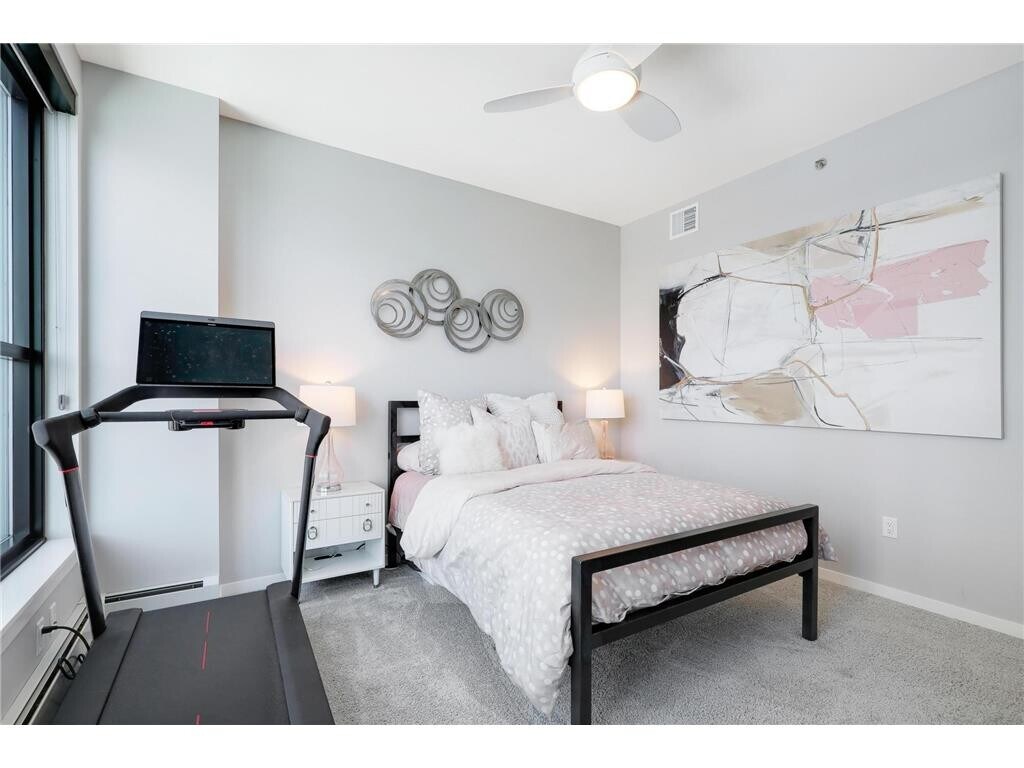 Situated in the heart of downtown Minneapolis, Portland Towers places you right in the middle of the city’s best dining and entertainment. Corner unit that offers open living space filled with natural light from floor-to-ceiling windows, along with two generously sized bedrooms and convenient in-unit laundry. The home features numerous upgrades such as engineered wood flooring, upgraded cabinetry, tilework, and modern appliances. The contemporary kitchen is both functional and stylish, showcasing stainless steel appliances, a tiled backsplash, an oversized island, soft-close drawers, and a pantry with pull-out shelving. Enjoy the private balcony overlooking downtown. Two parking stalls and a storage locker are included. Included in rent: 2 Indoor heated parking stall(s), storage unit, water/sewer/trash, gas, basic cable and internet; Tenant responsible for electric. App Fee: $78. Admin Fee: $150; Move-in fee: $300.