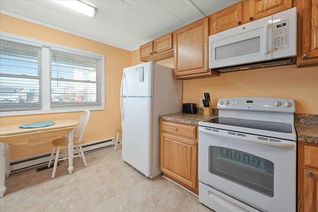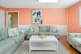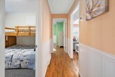 Offseason rental October through April. 2nd floor unit. Beautifully renovated Ocean City oceanside apartment with a short walk to the beach and no highways to cross. The apartment features three bedrooms and one-and-a-half bathrooms. The living area features a nice sized living room with sleep-sofa, fully-equipped kitchen and a dining space. There is a large deck off of the living area that is a nice place to relax and unwind after a long day at the beach. The first bedroom features a queen sized bed and television. The second bedroom features bunk-beds and a television. The third bedroom features a queen sized bed and television. Both bathrooms are centrally located and easily accessible from throughout the apartment. The property is close to shopping, restaurants, amusements and more.