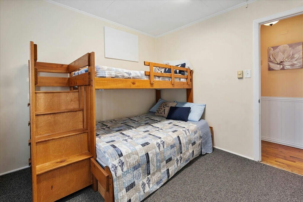 Offseason/Winter Rental. 1st floor unit. Classic Ocean City oceanside apartment with a short walk to the beach and no highways to cross. The apartment features three bedrooms and one-and-a-half bathrooms. The living area features a good sized living room with sleep-sofa and a fully-equipped kitchen. There is a large deck off of the living area that is a nice place to relax and unwind. The first bedroom features a queen sized bed and television. The second bedroom features bunk-beds and a television. The third bedroom features a full sized bed and television. Both bathrooms are centrally located and easily accessible from throughout the apartment. The property is close to shopping, restaurants, amusements and more.