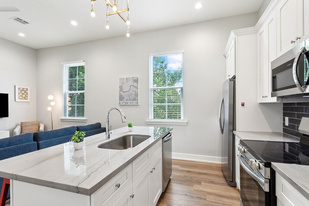 Introducing our brand new 4 bedroom, 3 bathroom unit located just 1 block from Brunos and 3 blocks from the edge of Tulane's campus. This modern apartment boasts a wet bar, stainless steel appliances, and a convenient sink in the island for easy meal prep. With keyless entry for added security and fully furnished for your convenience, this new construction unit is the perfect place to call home. Just 3 blocks away from The Boot, you'll have easy access to all the best nearby venues. Don't miss out on the opportunity to live in this stylish and convenient apartment in the heart of New Orleans.
