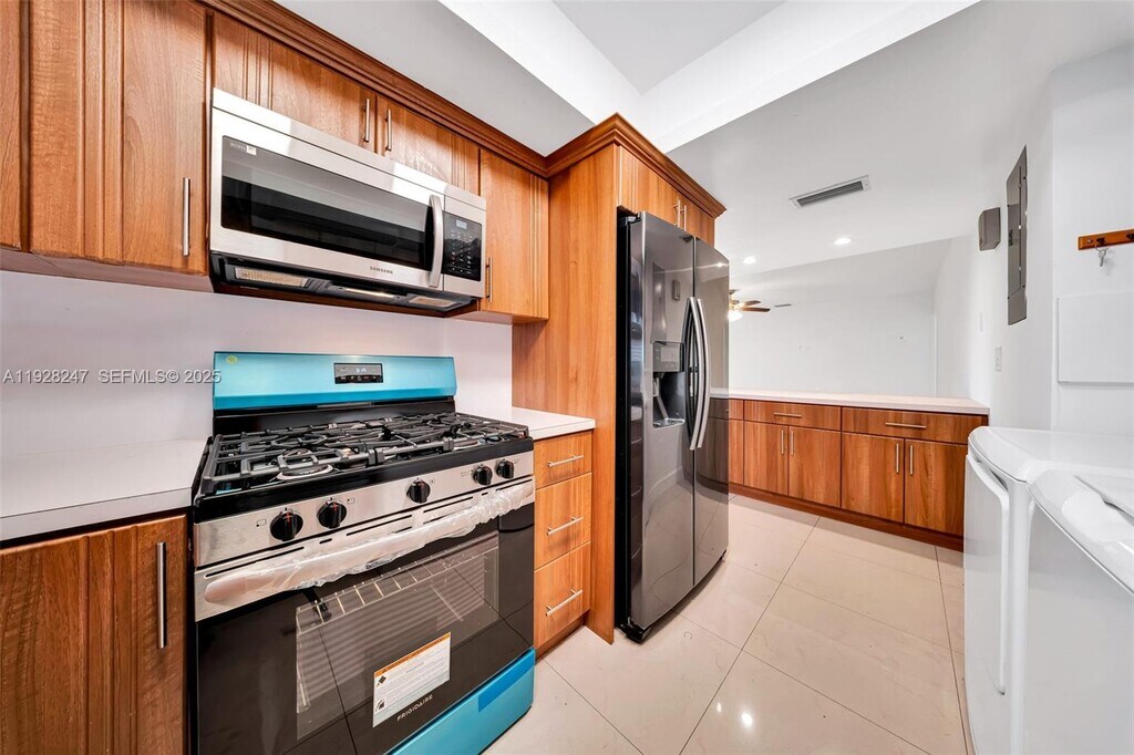 Beautiful 3-bedroom, 2-bath townhome in the heart of Miami Lakes. This spacious residence offers private parking directly in front of the unit and a large gated backyard patio—perfect for relaxing, entertaining, or outdoor dining. Located on a quiet street in a safe, family-friendly neighborhood, the home is surrounded by parks, walking paths, and green spaces, all within walking distance—ideal for an active lifestyle. The property features city-supplied natural gas service for the stove, dryer, and water heater.