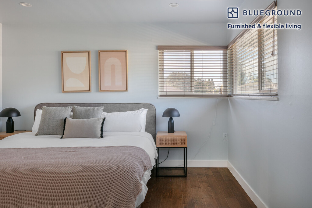 Feel at home wherever you choose to live with Blueground. You’ll love this pretty Downtown Menlo Park furnished two bedroom apartment with its modern decor, fully equipped kitchen, and exquisite living room. Ideally located, you’re close to all the best that Menlo Park has to offer! (ID #SFO1497) The advertised rate of $5,890/month is the lowest available price, based on a 11 month(s) and 29 day(s) stay with a move-in date of June 22, 2026. Rates vary depending on the duration of stay, season, and other parameters. For exact pricing and additional pricing components, please visit our website and enter your desired move-in and move-out dates. The rate is applicable when billed upfront; it can be higher if billed in multiple payments. Brokers are welcome to reach out. Were you looking for an unfurnished lease? Try Blueground instead and upgrade from unfurnished to furnished living: - Furnished at rates comparable to unfurnished - No setup or furniture costs - save thousands - Move-in ready - save time, just bring your suitcase Designed with you in mind Gorgeous furniture, fully equipped kitchen, smart TV, and a premium wireless speaker are just a few of the amenities you’ll find inside this two bedroom apartment. Ideally located in Menlo Park, you’ll find a lot to love outside as well. When you’re ready to relax, you’ll be happy to discover every Blueground bedroom comes with superior quality mattresses, luxury linens, and cozy towels. We handle everything so you can simply show up and start living. This apartment also offers in-apartment laundry. Sleeping arrangements King Bed, 70.8in/180cm King Bed, 70.8in/180cm Amenities Building amenities unique to this two bedroom apartment include an on-site: - Dryer - Washing machine - Parking - Pets allowed Arrival and ongoing support The entire apartment is yours to enjoy! Throughout your stay, you’ll have access to our Client Experience team through the Blueground App. You can schedule additional cleanings, submit maintenance requests, and view our neighborhood recommendations with just a few taps. We’ll share all details upon confirmation of your stay. Other things to note This Blueground apartment has flexible lease options, allowing you to book it for one month, a year, or more. Pets are welcome, though weight limits and breed restrictions apply and may incur fees. Parking is offered based on availability and is subject to a fee. Please keep in mind that this is a walk up building. We take great pride in ensuring every photo displayed is shot in our own units with our actual furnishings. That said, we regularly refresh our decor and furniture arrangement, which may differ from what’s pictured. Also note - There are stairs leading up to the entrance of this apartment, but no elevator [SI]