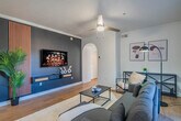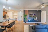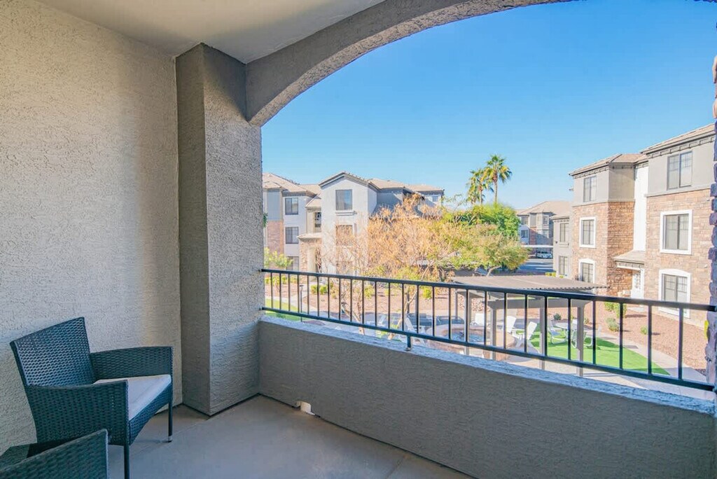 Feel at home in this newly built condo in Glendale that is steps away from the stadium and some of the best shopping, dining, and golf courses in greater Phoenix. This garden-style unit requires climbing one to two flights of stairs. If you require a ground floor unit, please inquire before booking. This apartment is suitable for a family, group of friends, or business travelers and has all of the amenities necessary to enjoy your stay. Great amenities await you, including a resort-style pool, a jacuzzi hot tub, a fitness center, a large outdoor fireplace, a BBQ area, and an arcade. The apartment features quartz countertops, stainless steel appliances, and a fully equipped kitchen. Also enjoy 100mbps+ internet, modern decor, a Smart-TV with streaming apps installed, a washer/dryer, complimentary coffee, and a patio. Kombucha is available on tap 24/7. Ideally located close to different attractions, this apartment is in Glendale, right in the Westgate entertainment area. Enjoy live music, movies, football, and dining all in one place, just across the street from the building. It is also a quick drive or Uber/Lyft ride to other attractions. Smoking, of any kind, is not permitted within or outside of the apartment, including balconies, patios, or common and/or parking areas. Any sign of smoking is a violation of the stay agreement, which may result in immediate termination and recovery fees beginning at $500. Quiet hours are between 9 PM and 8 AM. There is a $200 penalty for removing smoke detectors and a $200 penalty for lost key fobs. No outside guests are allowed without permission. Check-in is at 4 PM and check-out is at 11 AM (a late fee of $75/hr applies). A valid photo ID is required to complete the booking. A maximum of two pets are allowed (40lbs combined), excluding Pit Bulls and Bull Mastiffs or similar breeds. An additional pet fee of $100-300 applies based on stay length and is collected separately. All pets must be on a leash when outside on the property. Guests must agree not to disturb neighbors at all times during the stay. No weapons or drugs are allowed; police will be called for violating this rule. [SI]