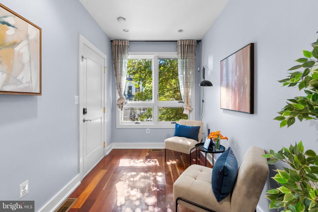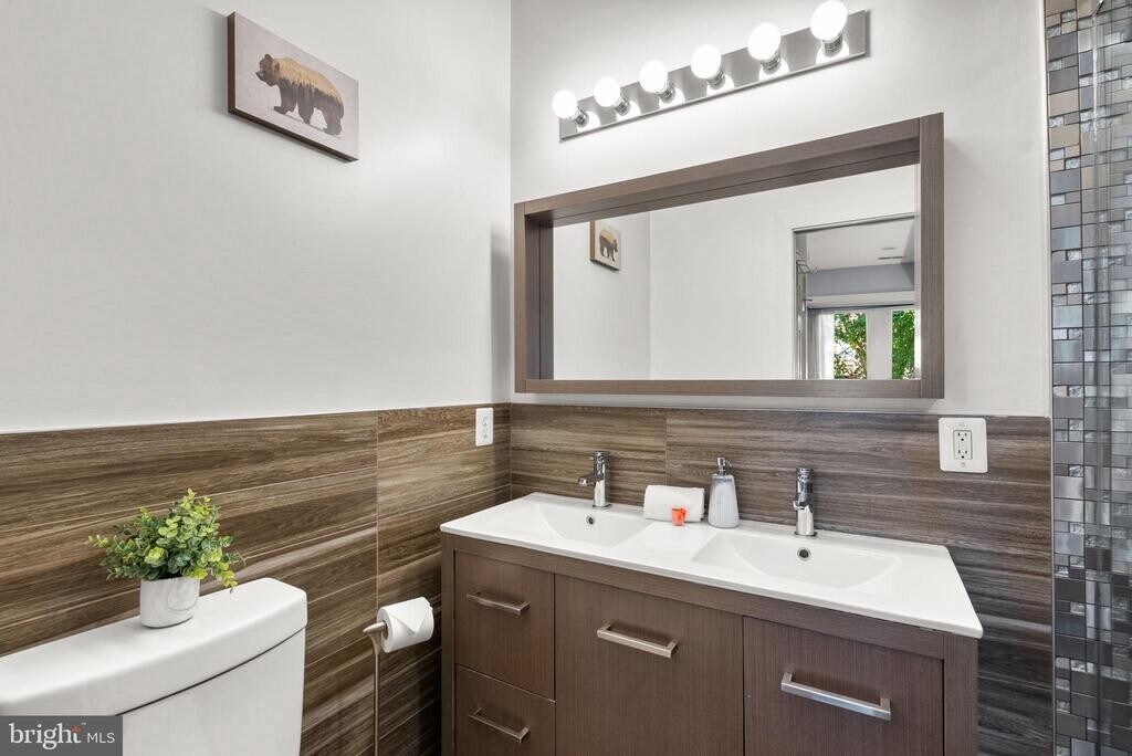 Welcome to this stunning two-level condo offering over 1,200 square feet of beautifully designed living space in vibrant Columbia Heights. Featuring Brazilian cherry floors, recessed lighting, and oversized windows, the open main level is filled with natural light. The chef’s kitchen boasts a large center island with breakfast bar, 42 espresso cabinetry, custom glass backsplash, stainless steel appliances, and gas cooking with pot filler—perfect for entertaining. The main-level primary suite includes direct access to a private deck and rear yard, ideal for relaxing or outdoor dining, along with a luxurious ensuite bath featuring custom tile, a walk-in shower, and double vanity. A powder room and in-unit laundry complete this level. The lower level offers a spacious second primary suite with large windows and a spa-like bath with an oversized shower and double vanity. Located just 0.4 miles to Petworth Metro and close to restaurants, shops, and everyday conveniences, this home offers the perfect blend of style, comfort, and location."