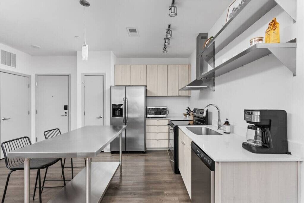 Feel at home in this spacious 1-bedroom apartment located in the Bottleworks district, right on Mass Ave and next to all the awesome bars and restaurants. This apartment features inviting living areas, a fully equipped kitchen, and a bathroom complete with toiletries. You can also enjoy an in-unit washer and dryer, a smart TV with streaming apps installed, a TV in the living room, and complimentary coffee. You’ll have everything at your fingertips in the heart of the Bottleworks District of Indy. Step outside your door to the Indy Cultural Trail, a world-class urban bike and pedestrian path that connects unique neighborhoods, cultural districts, and entertainment. Needler's Market is just a few blocks away. The Indiana Convention Center is 0.3 miles away and Lucas Oil Stadium is 0.5 miles away. Smoking of any kind is not permitted within or outside of this apartment, including balconies, patios, or common and/or parking areas. Any sign of smoking is a violation of the stay agreement, which may result in immediate termination and recovery fees beginning at $500. There is a $200 penalty for removing smoke detectors and a $200 penalty for lost key fobs. No outside guests are allowed without permission. Quiet hours are between 9pm and 8am. Check-in is at 4 PM and check-out is at 11 AM (a $75/hr late fee applies). No weapons or drugs are allowed; police will be called for violating this rule. A valid photo ID is required to complete the booking. There is a maximum of 2 pets allowed (40lbs combined), and no Pit Bulls or Bull Mastiffs [or similar breeds] are permitted. An additional $100-300 pet fee based on stay length is collected separately. All pets must be on a leash when outside on the property. A pet fee may be charged for guests traveling with an emotional support animal, and the presence of emotional support animals can be declined from stays or Experiences. [SI]